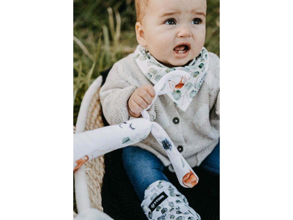 Premýšľate, ako potešiť novopečenú mamičku a jej dieťa niečím originálnym? S produktom Môj prvý zajačik neurobíte chybu. Vďaka svojmu krásnemu dizajnu poslúži nielen ako dekorácia a ľahko ho zladíte s ostatnými výrobkami T-TOMI. Zajačik bol navrhnutý tak, aby ho malé detské rúčky mohli ľahko uchopiť. Môj prvý zajačik je z jednej strany vyrobený zo 100 % bavlny a z druhej strany z príjemného polyesteru (velvetu).materiál 100 % dizajnová bavlna + nadýchaný polyester (velvet)