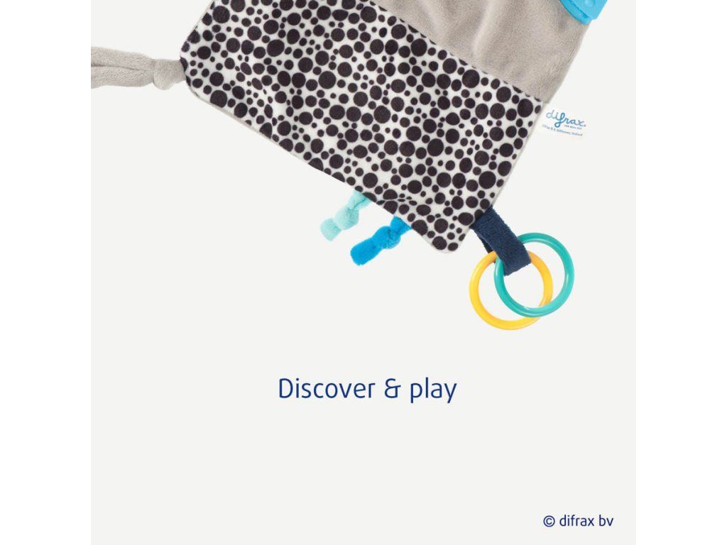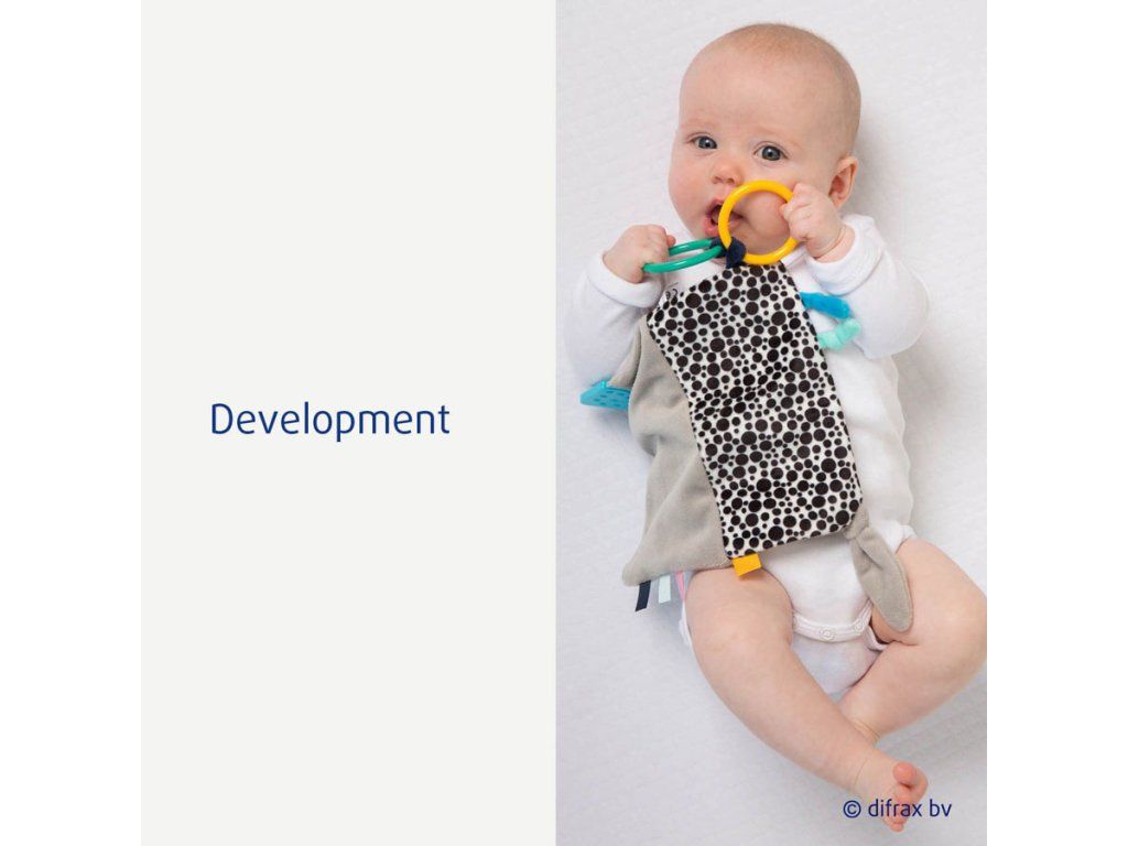 Mojkáčik Kamarát od Difraxu je z jemného plyšu s nápaditým povrchom a kreatívnymi komponentmi. Jednotlivé časti Kamaráta (vyrobené každé z iného materiálu, v rozdielnych farbách, s odlišnými funkciami, a pod.) natoľko dieťatko uchvátia, že sa ním zabaví na dlhé hodiny. Zároveň sa pri hraní s kamarátom rozvíja aj jeho jemná motorika a hryzadlo po stranách mojkáčika uľaví bábätku počas neľahkého obdobia rastu zúbkov. Mojkáčik dodáva bábätku pocit istoty a pohodlia a šuštivé zvuky ho istotne zaujmú.