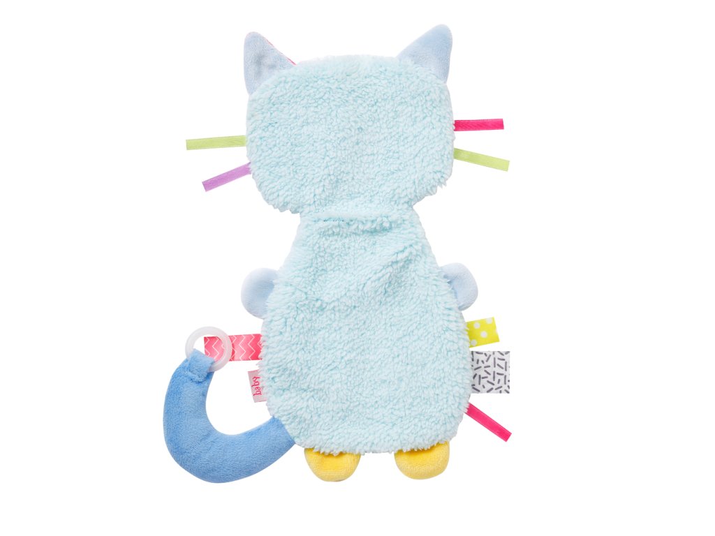 Farebná zvlnená mačička z kolekcie COLOR Friends vzbudzuje zvedavosť dieťaťa, podporuje vedomé uchopenie a podporuje zmysly dieťaťa.Vďaka zmesi materiálov a stimulujúcemu zvuku skrytého zvinutého papiera to nikdy nebude nuda. Bábätká milujú mačací tvar a jeho načechranú srsť, aby ju uchopili, dotkli sa, objavili a maznali sa! Roztomilú mačičku možno vziať kamkoľvek a sprevádza dieťa pri hraní a snívaniu. Praktický upevňovací krúžok vhodný.