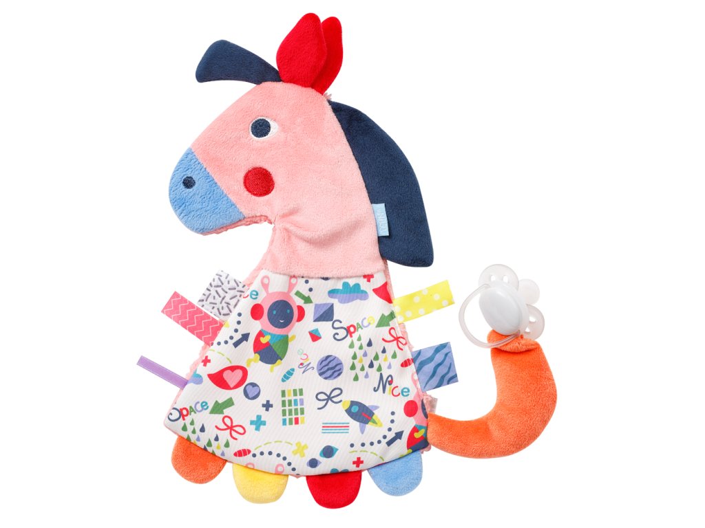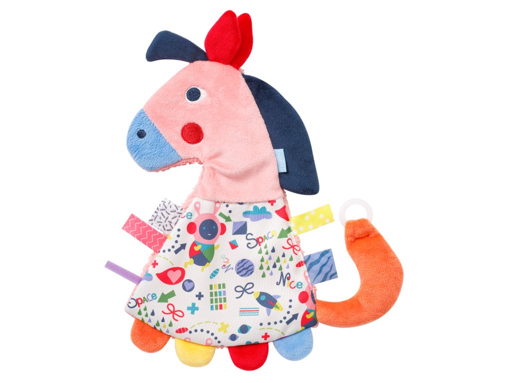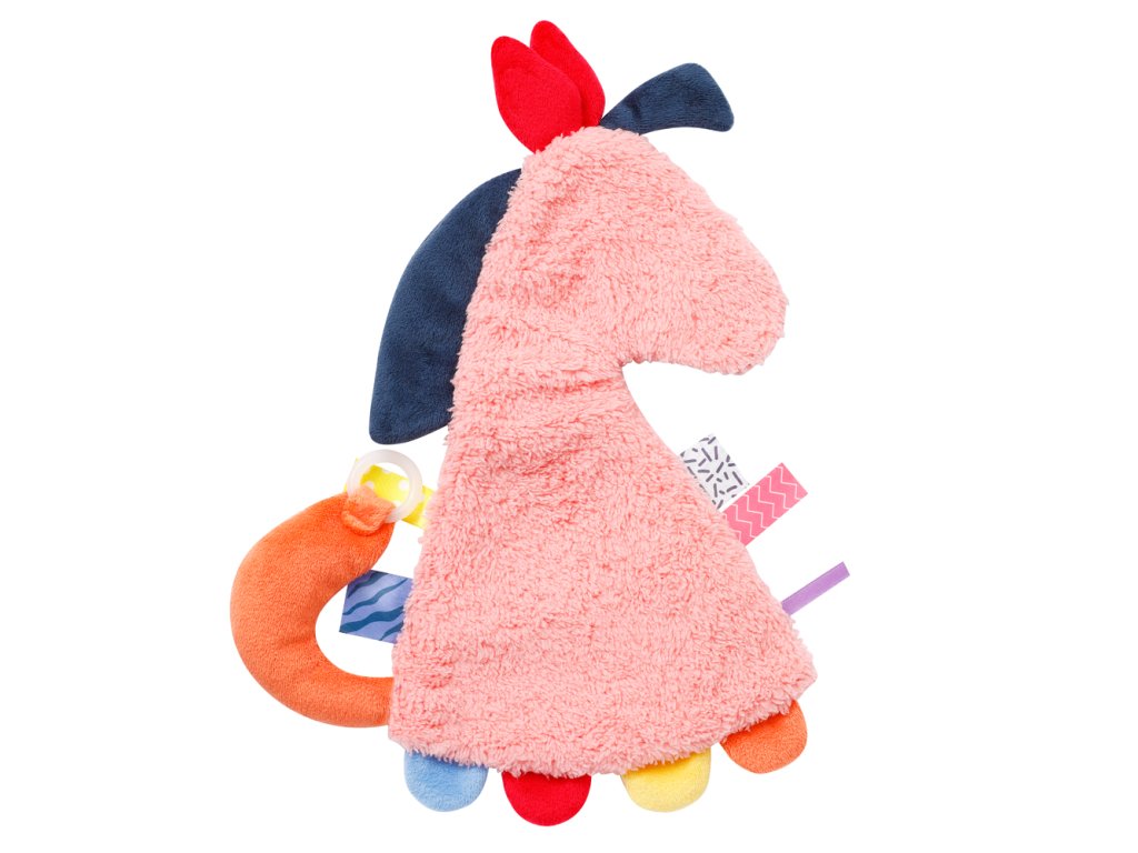 Farebný zvlnený kôň z kolekcie COLOR Friends vzbudzuje zvedavosť dieťaťa, podporuje vedomé uchopenie a podporuje zmysly dieťaťa.Vďaka zmesi materiálov a stimulujúcemu zvuku skrytého zvinutého papiera to nikdy nebude nuda. Deti milujú tvar koňa a jeho načechranú srsť, aby ho uchopili, dotkli sa ho, objavili a maznali sa s ním! Roztomilého koňa možno vziať kamkoľvek a sprevádza dieťa pri hraní a snívaniu.