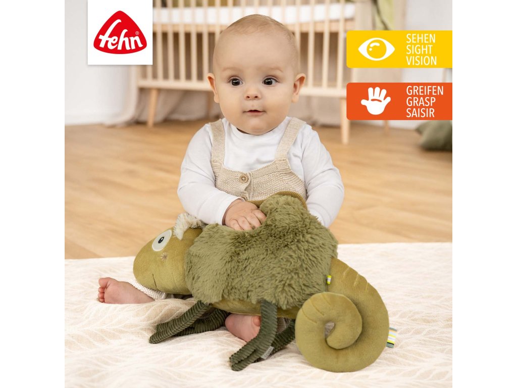 Parťák na hranie, ochranca a maznáčik: plyšová hračka na uchopenie, skúmanie a maznanie – pre bábätká a malé deti od narodeniaJe rozkošný, veľký a hebučký. Maznacieho chameleóna si okamžite zamilujete!