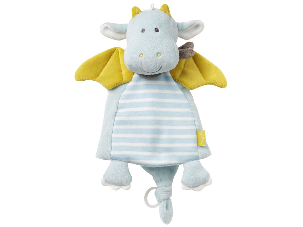 Plyšový muchláčik veľkosti trojuholníka s aplikáciou dráčika. Muchláčika možno zviazať jednotlivými čapíkov k sebe a vytvoriť tak hračku, maňušky. Na čapík muchláčika sa dá pripevniť cumlík, aby ste ho mali vždy po ruke a už ho nikdy nestrácali. Plyšový kamarát, nabáda k pomaznanie.