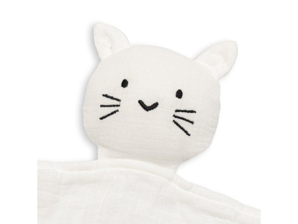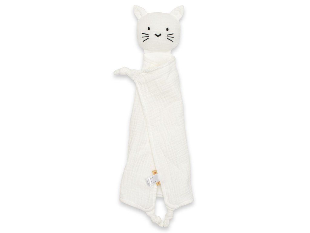 Mušelínový usínáčik New Baby Cat je to ideálna plyšová hračka pre naše dieťa od prvých dní života. Vyrobená z mäkkej a na dotyk príjemnej mušelínovej tkaniny. Poskytuje pocit bezpečia a uľahčuje zaspávanie. Mäkký vzhľad a estetické farby zabezpečujú estetický a minimalistický dizajn. Plyšová hračka sa dokonale hodí k našim ostatným mušelínovým výrobkom a vytvára krásnu súpravu, ktorú možno darovať ako darček na oslavu narodenia dieťaťa.