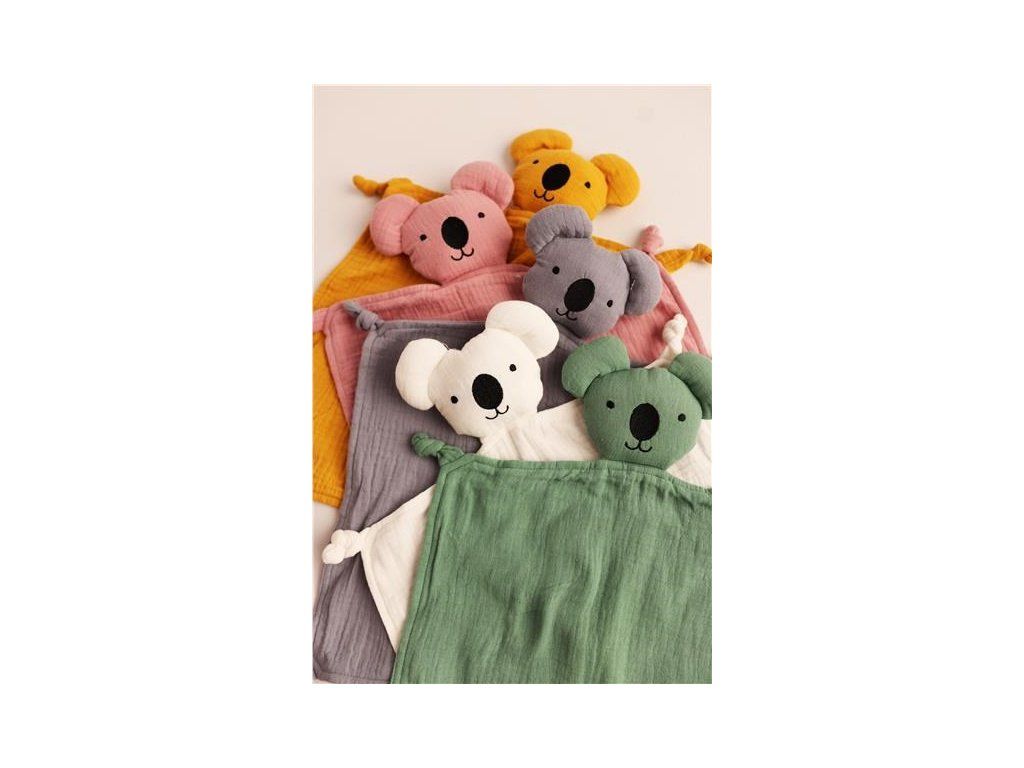 Mušelínový usínáčik New Baby koala je to ideálna plyšová hračka pre naše dieťa od prvých dní života. Vyrobená z mäkkej a na dotyk príjemnej mušelínovej tkaniny. Poskytuje pocit bezpečia a uľahčuje zaspávanie. Mäkký vzhľad a estetické farby zabezpečujú estetický a minimalistický dizajn. Plyšová hračka sa dokonale hodí k našim ostatným mušelínovým výrobkom a vytvára krásnu súpravu, ktorú možno darovať ako darček na oslavu narodenia dieťaťa.