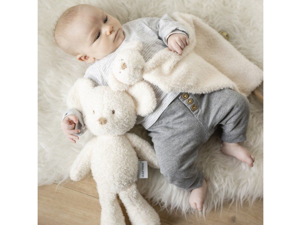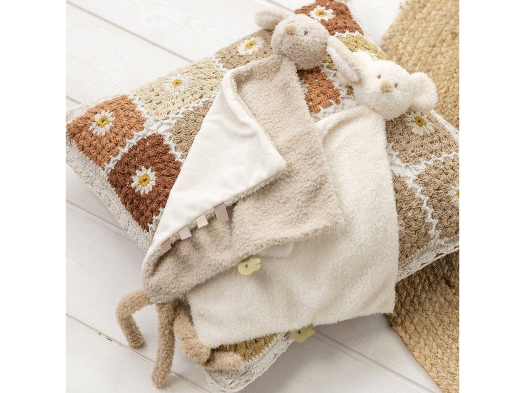 Náš maznáčik je nerozlučný kamarát vášho bábätka už od narodenia – prináša pocit istoty, pokoja a pohodlia v každej situácii. Je ideálny na maznanie v postieľke, upokojenie na cestách či hranie v ohrádke.Mäkučká dečka s milým motívom ponúka množstvo úchopových možností, ktoré podporujú rozvoj zmyslov a jemnej motoriky. Dieťatko môže pohodlne chytať hlavičku zvieratka alebo zaujímavé visačky po stranách. Praktické pútko umožňuje pripevniť cumlík, aby bol vždy po ruke.