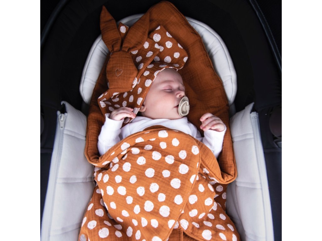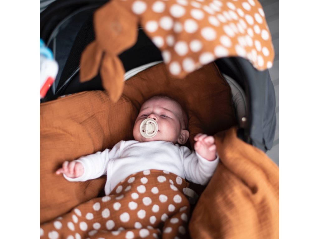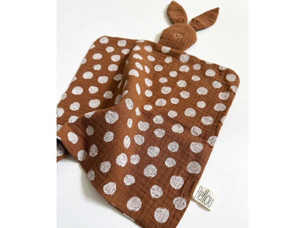 Muchláčik je vyrobený zo 100 % bio bavlneného mušelínu, ktorý je mimoriadne jemný, priedušný a šetrný k citlivej detskej pokožke.Prírodný mušelín je savý a s každým praním sa stáva ešte mäkším a príjemnejším na dotyk – ideálny na mojkanie aj pokojný spánok bábätka.Rozmer: cca 29 × 29 cmMateriál: 100 % bio bavlna, výplň hlavičky: vatelín