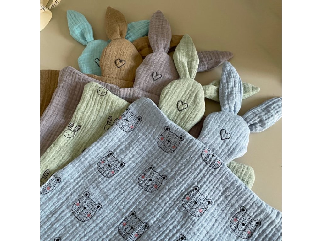 Muchláčik je vyrobený zo 100 % bio bavlneného mušelínu, ktorý je mimoriadne jemný, priedušný a šetrný k citlivej detskej pokožke.Prírodný mušelín je savý a s každým praním sa stáva ešte mäkším a príjemnejším na dotyk – ideálny na mojkanie aj pokojný spánok bábätka.Rozmer: cca 29 × 29 cmMateriál: 100 % bio bavlna, výplň hlavičky: vatelín