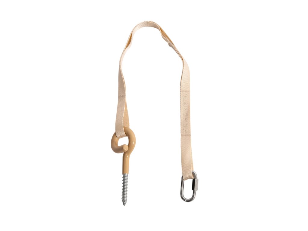 Sada na zavesenie na strop vám umožňuje nainštalovať detskú hojdaciu sieť Membantu s kolískovým ležadlom alebo bez neho do stropu. Dodáva sa so 7 možnosťami nastavenia, čo uľahčuje nastavenie dĺžky zavesenia a dosiahnutie požadovanej dĺžky. Skladá sa z pogumovaného háku a odolného nylonového popruhu s nosnosťou až 25 kg. Sada na zavesenie na strop je vhodná na inštaláciu do drevených stropov a iných drevených konštrukcií. Ak potrebujete inštaláciu do iných materiálov, uistite sa, že používate vhodné hmoždinky.