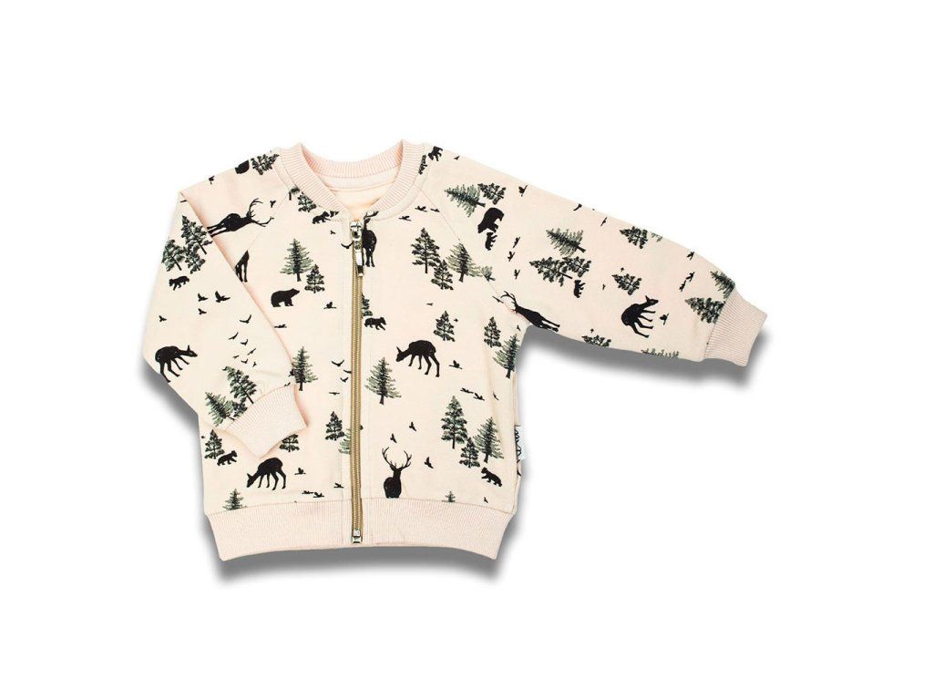 Moderná štýlová a praktická mikinka Nicol Bambi. Zdobená lesným vzorom. Mikinka má zapínanie na zips po celej dĺžke a pružný lem na rukávoch a v páse. Je vyrobená z pohodlnej teplákoviny. Materiál: 95% bavlna, 5% elastan. OEKO-TEX STANDARD 100.Dodatočné parametre