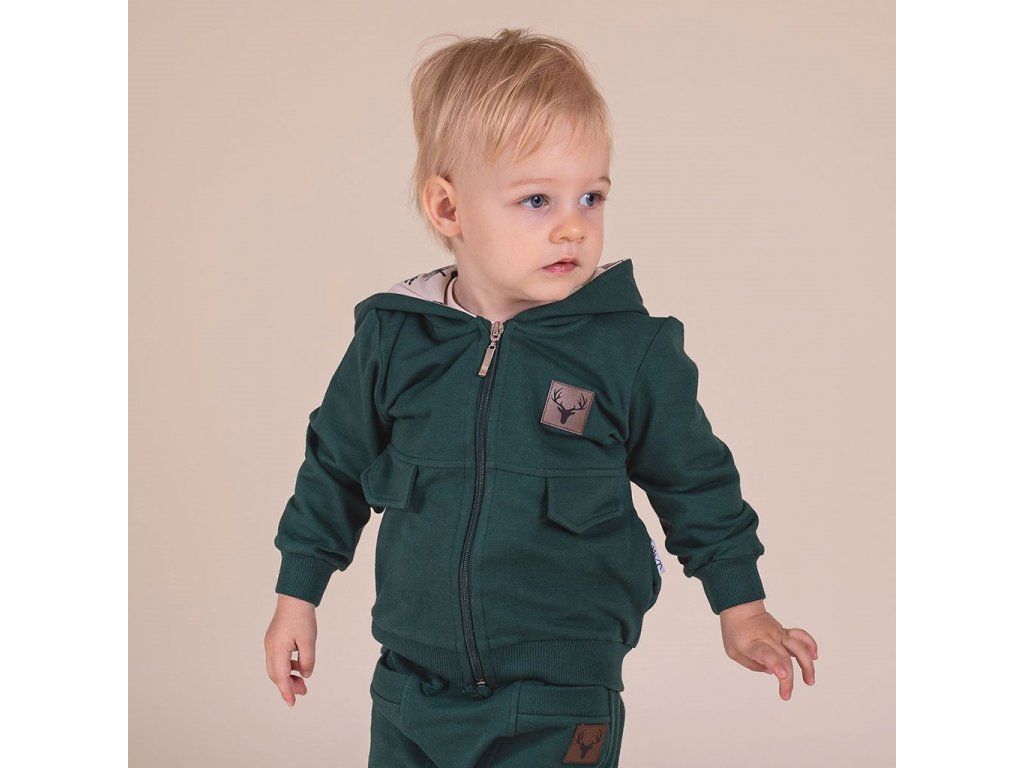 Dojčenská tepláková mikina s kapucňou Nicol Bambi zelená, 56 (0-3m) - 54011