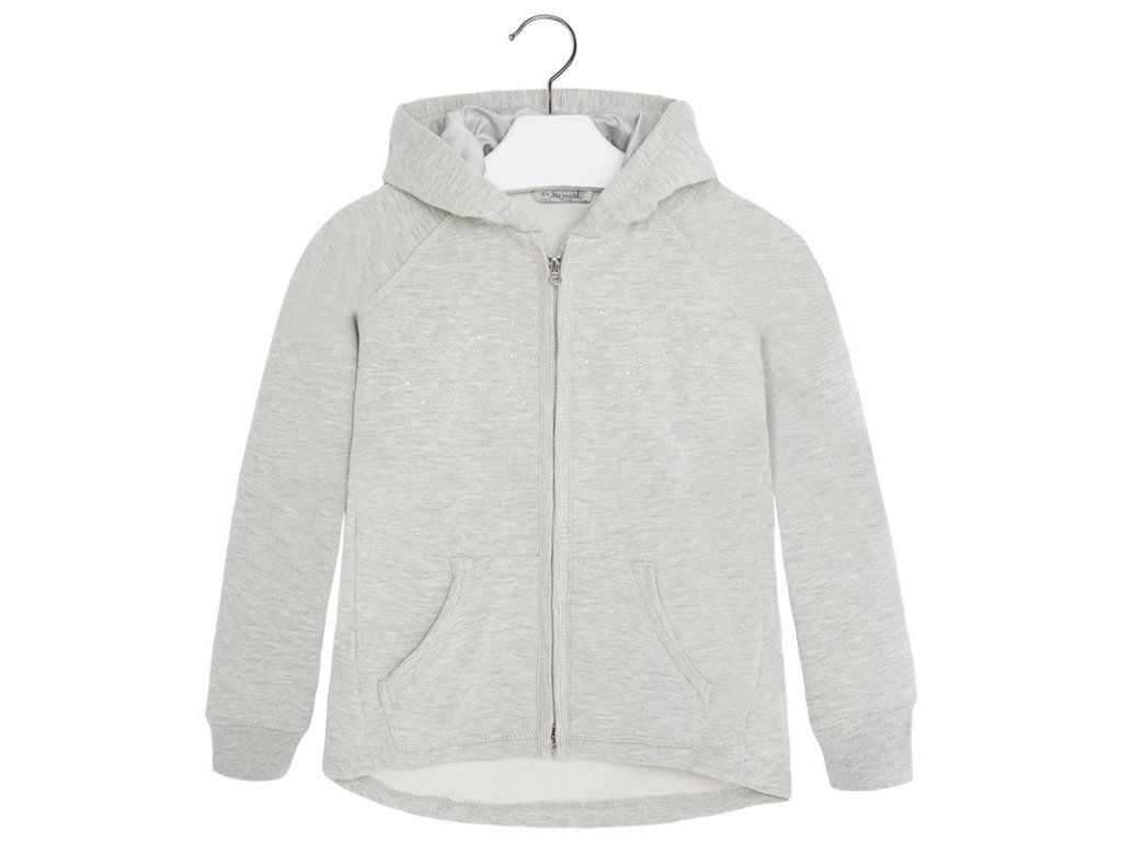 Krásná šedá mikinka na rozepnutí s výšivkou a kapucí pro slečnu od kvalitní španělské značky MAYORAL.