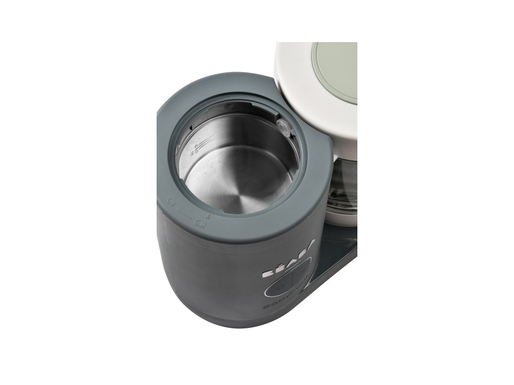 Úplne nový model Babycook® NEO má sklenenú nádobu s objemom 1250 ml a nerezový vkladací košík s objemom 1000 ml. Nerezový zásobník na vodu s vnútornou ryskou a so širokým vstupným otvorom uľahčuje plnenie vodou aj čistenie zásobníka.