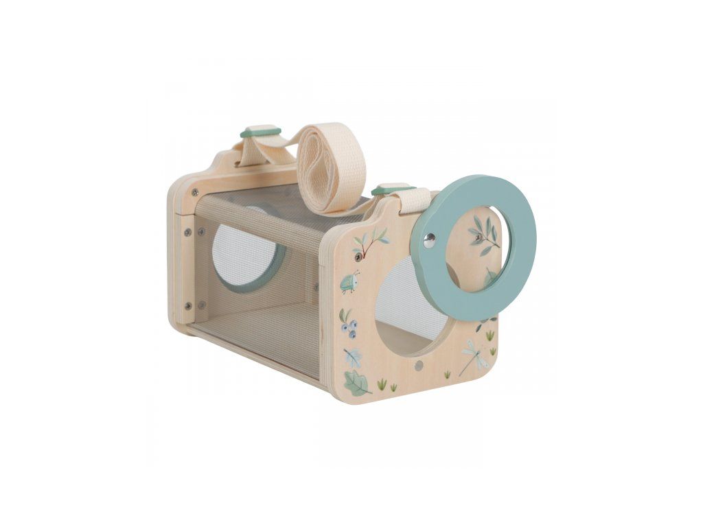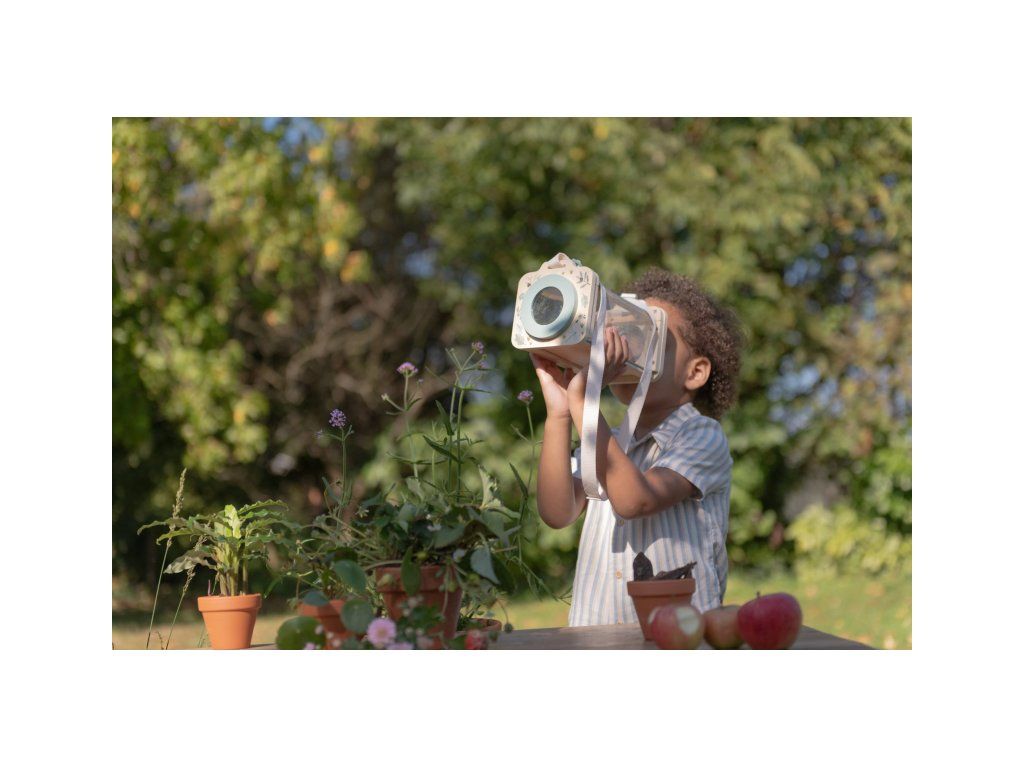 Unikátna pomôcka pre malých zvedavých prírodovedcov umožní deťom skúmať zblízka a bezpečne hmyz, ktorý žije na záhrade, na lúke alebo v lese. Veľká lupa slúži aj ako dvierka, ktorými sa hmyz dostane dovnútra boxu. Bočné steny sú zo sieťoviny, aby bol hmyz vo vnútri v bezpečí a mohol dýchať. Popruh umožňuje ľahké nosenie na krku s voľnými rukami. Po skončení pozorovania hmyz môžete bez problémov vypustiť späť do prírody, kam patrí!