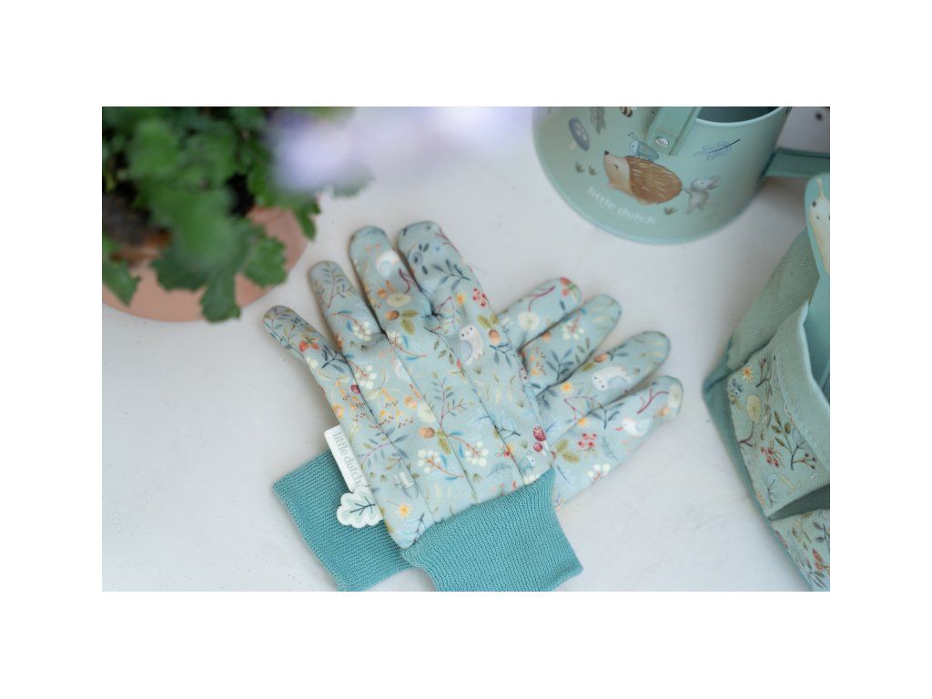 10-dielna sada náradia v krásnom prevedení obsahuje všetko, čo malá záhradníčka či záhradník potrebujú: kanvičku na zalievanie, záhradnícke rukavice, dve lopatky a hrabličky v kvalitnom prevedení z odolného kovu s drevenou rukoväťou a tri zapichovacie drevené menovky. Všetko je uložené v praktickej pevnej taške z bavlneného plátna s množstvom vreciek pre prehľadné ukladanie a jednoduché prenášanie. Náradie aj taška sú zdobené krásnou potlačou motívov zo života v lese.