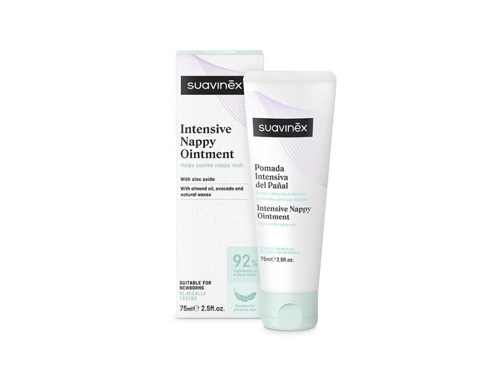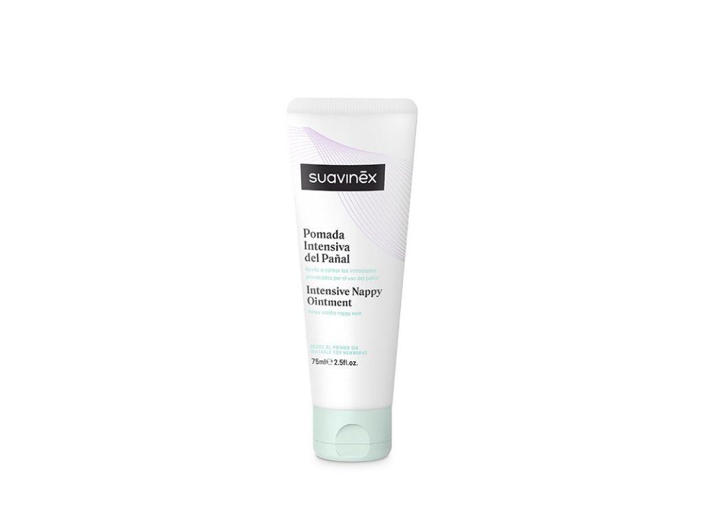 Napomáhá zklidnění podrážděné pleti v důsledku používání plen. Intenzivní pomáda pod plenky Suavinex napomáhá v obnovování funkce pleti v oblasti použití plenky, čímž ji udržuje chráněnou, hydratovanou a zklidněnou. Složení pomády, obohacené o oxid zinečnatý, vytváří ochranný film schopný izolovat pleť před vlivy vlhkosti a tímto předcházet podráždění způsobenému močí a stolicí. Zvláčňující vlastnosti kombinace rostlinných olejů a vosků přírodního původu pak vyživují a zklidňují pleť.