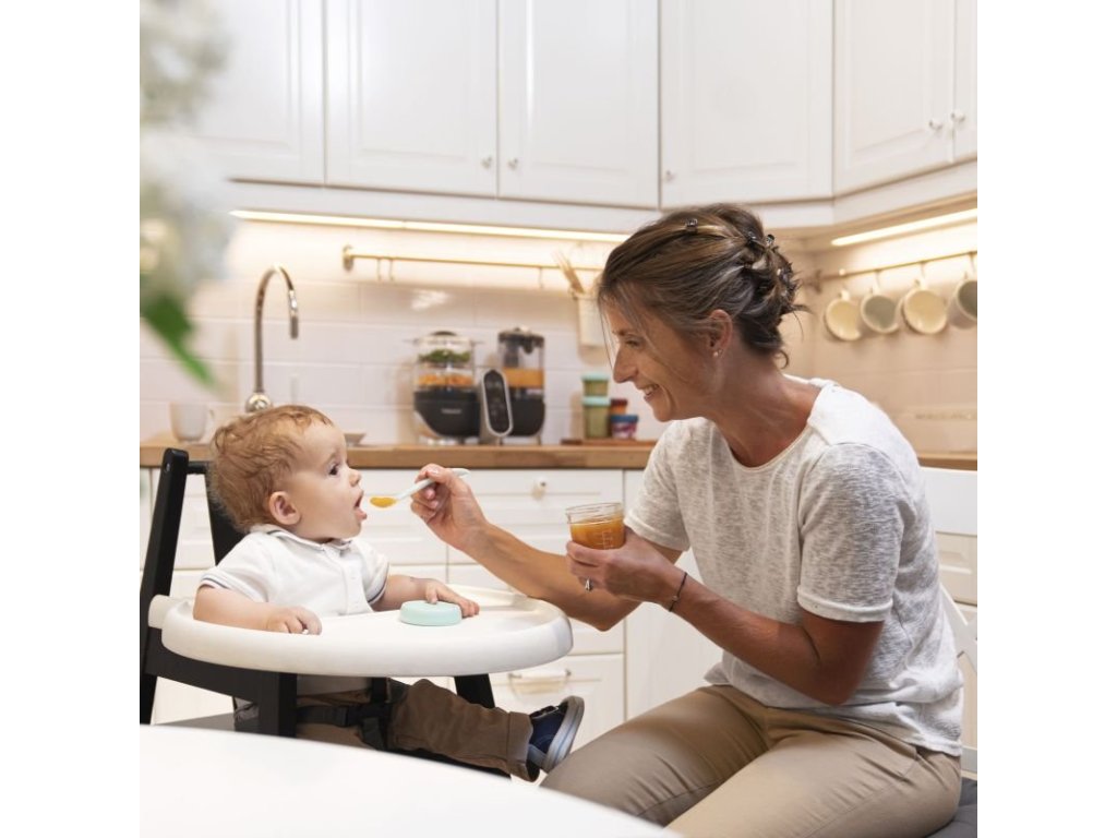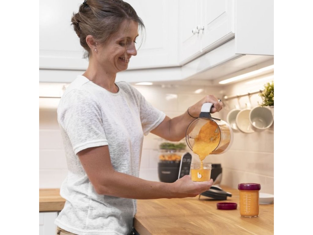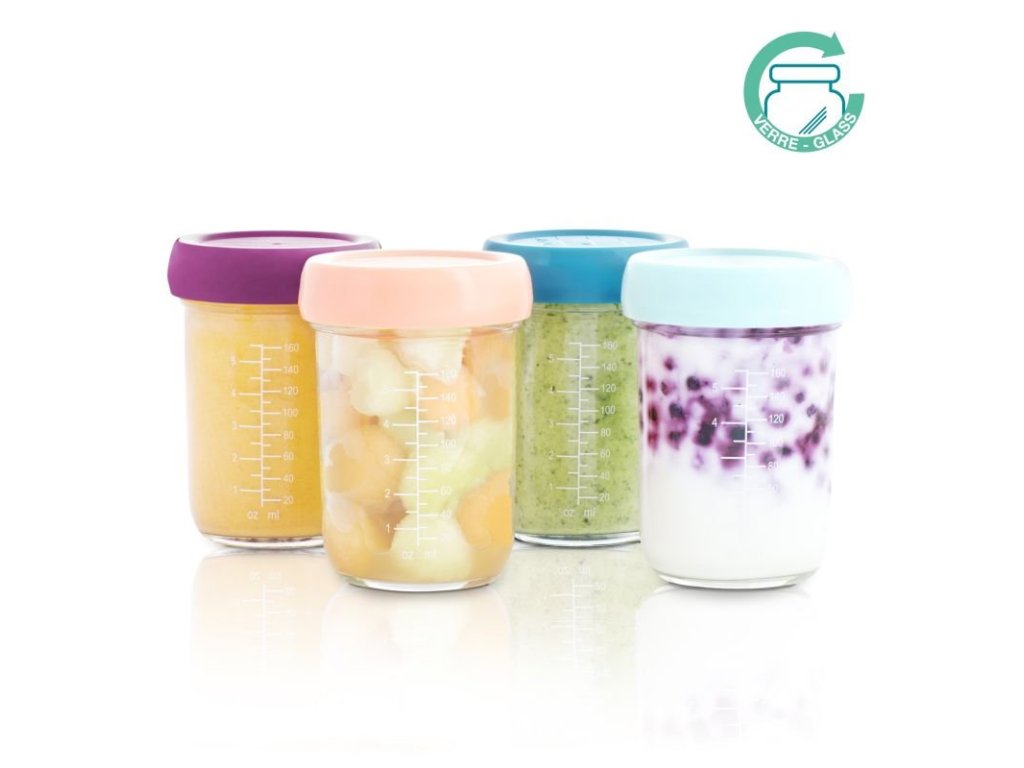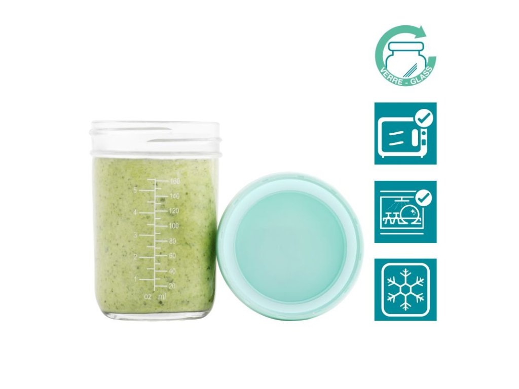 Babymoov skladovací misky majú objem 220ml. Majú viečko so skrutkovacím uzáverom a hermetickým, silikónovým tesnením. Na stene misiek je stupnica (v ml a oz) a na vrchnej strane viečok je prepisovateľný povrch, kde si môžete jednoducho poznamenať uvarený pokrm a dátum, kedy bol pripravený.