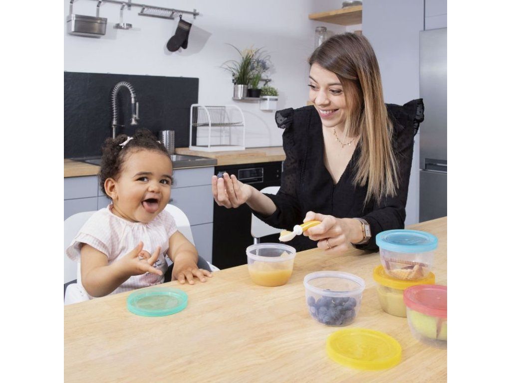 Skôr, než začnete dieťa kŕmiť, vždy skontrolujte teplotu pokrmu. Používajte misky iba pod dozorom dospelej osoby. Misky pred použitím vždy skontrolujte. Ak zistíte poškodenie, ďalej ich nepoužívajte. Pred použitím misky vyčistite. Obrázok je iba ilustračný.