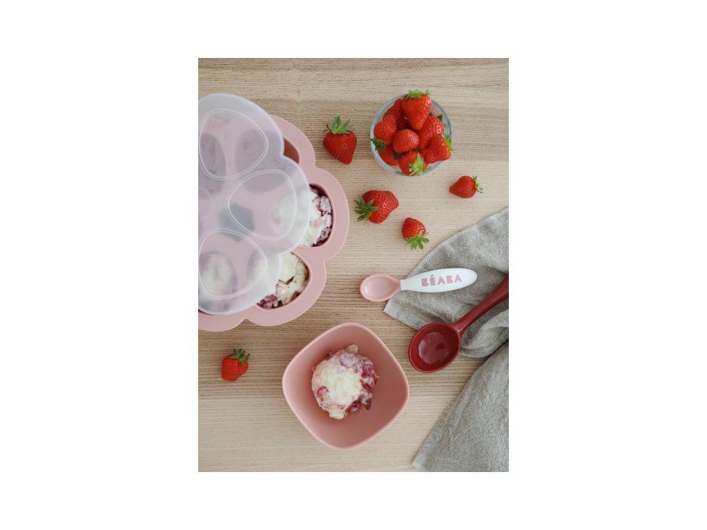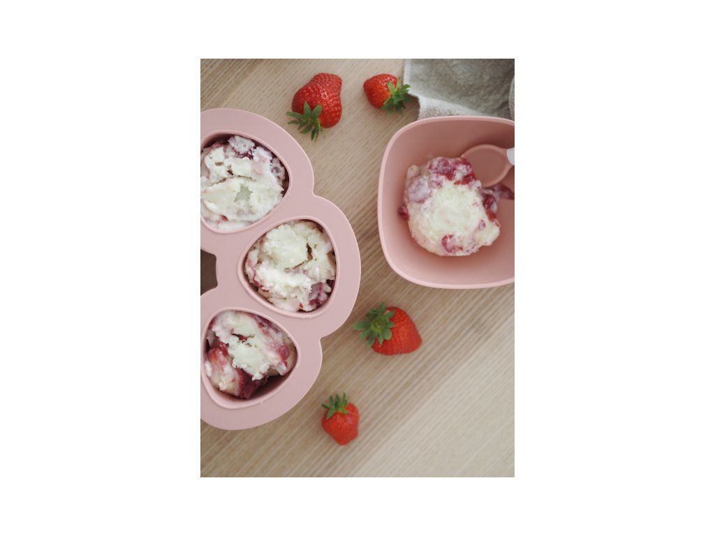 Zásobník na zeleninové aj ovocné príkrmy do mrazničky. Jednotlivé porcie alebo niekoľko porcií naraz môžu byť ohrievané vo vodnom kúpeli alebo v mikrovlnnej rúre.