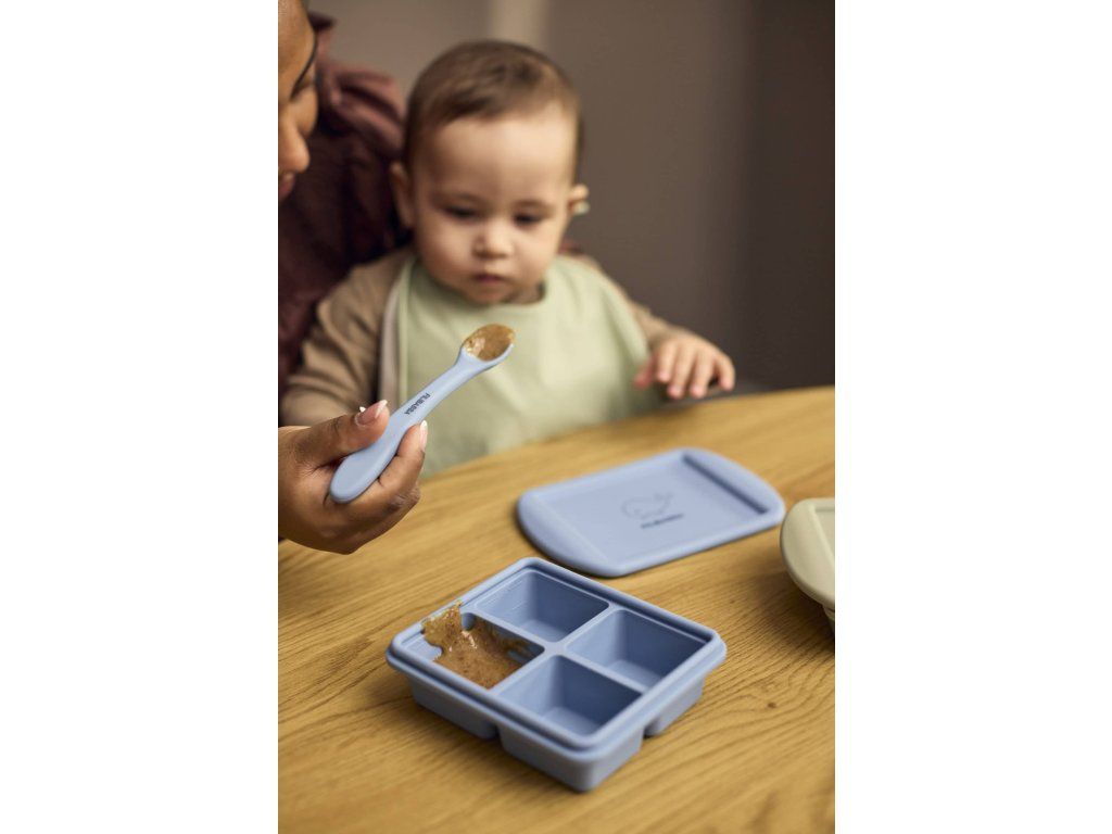 Každá miska má štyri priehradky s celkovým objemom 270 ml a je vybavená vzduchotesným vekom, ktoré udrží jedlo čerstvé. Vďaka pružnému silikónovému materiálu sa zmrazené porcie ľahko vyberajú, zatiaľ čo odolné prevedenie je ideálne na každodenné používanie. Vyrobené sú zo 100 % silikónu v potravinárskej kvalite s certifikátom LFGB. Misky sú bezpečné na používanie v mrazničke, mikrovlnnej rúre aj umývačke riadu (pred ohrevom alebo umývaním treba odstrániť veko).