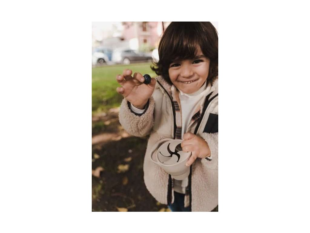 Silikónový snack - hrnček Cotton Cloud je vďaka uzatvárateľnému vrchnému viečku skvelým pomocníkom na cesty. Váš drobček si môže vychutnávať vždy čerstvý snack z vyvýšeného hrnčeka, po ktorý sa ľahko dostane vopchaním rúčky cez vrchnú priepustnú vrstvu. Hrnček je navyše možné poskladať a znížiť, aby drobec bez problémov dočiahol až na dno. Vrchná vrstva zároveň zabraňuje ľahkému vysypaniu jedla z hrnčeka. Silikónové uško z protišmykového materiálu zabezpečuje pohodlné uchopenie hrnčeka malými detskými ručičkami.