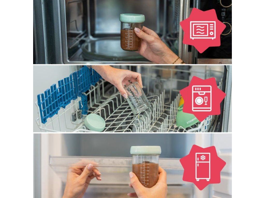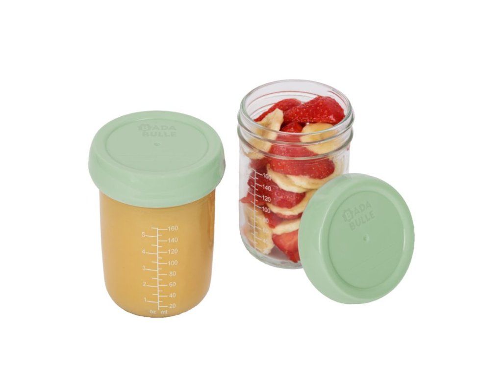 - sklenené misky pre zdravé skladovanie detskej stravy