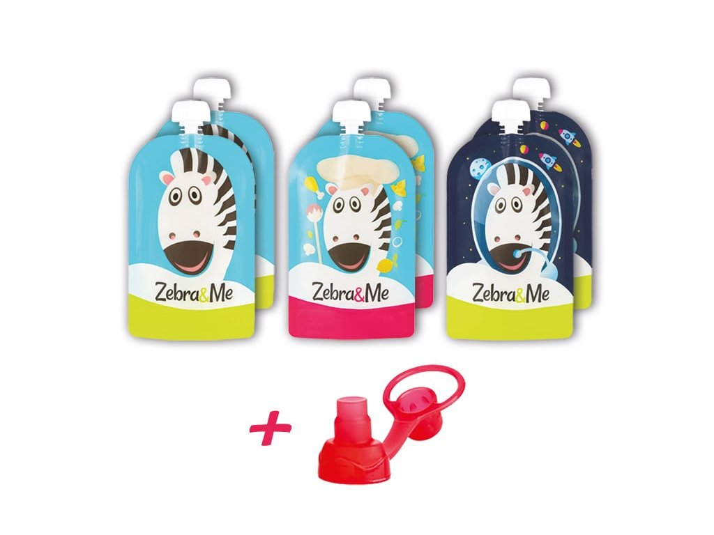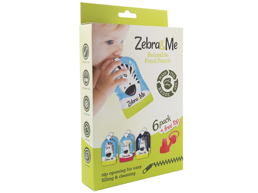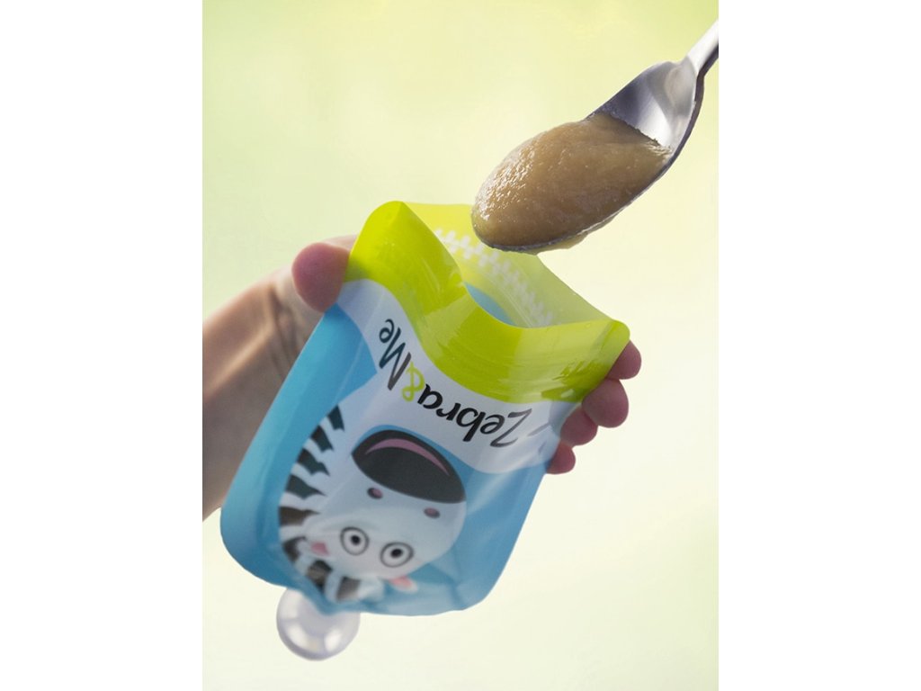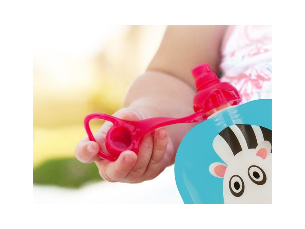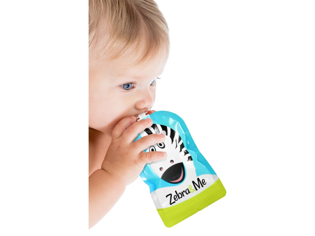 Naplňte obľúbeným kašovitým príkrmom, ovocným alebo zeleninovým pyré, smoothie, jogurtom alebo krémovým dezertom,... Použite znovu a znovu. Balenie obsahuje 6 kapsičiek (2x zebra, 2x zebra kuchár, 2x zebra kozmonaut) a 1ks červený silikónový náustok ChooMee s membránou proti rozliatiu alebo vytlačeniu obsahu kapsičky. Plniteľné kapsičky na opakované použitie Široký otvor so zipsom pre jednoduché plnenie a čistenie Možno umývať v umývačke riadu aj mraziť Neobsahujú BPA, PVC ani ftaláty, vhodné pre styk s potravinami, testované na Slovensku podľa noriem EÚ Ekonomická a ekologická alternatíva k príkrmom v jednorázových kapsičkách Objem cca 150ml Náustok s membránou proti rozliatiu Zabraňuje rozliatiu Chráni ústa a ďasná S membránou a vrchnákom Z vysokokvalitného jemného silikónu Neobsahuje BPA, PVC ani ftaláty Vhodné na všetky balenia príkrmov balených v kapsičke Pre deti od 4 mesiacov Vďaka hodvábne jemnému silikónu nebude kŕmenie z kapsičky už nikdy nebezpečné a bolestivé pre citlivé detské ďasná a zúbky. Membrána náustka navyše chráni obsah kapsičky pred náhodným vyliatím alebo vytlačením. Kapsičky sú ideálným riešením... von a na cestách. Žiadne lyžicky, žiadne tanieriky či poháre, žiadny neporiadok. Aj bez pomoci maminých rúk, jednoducho, samostatne a s radosťou. V aute, v lietadle, v parku, pri vode, v škôlke, na návšteve, či na nákupoch… kdekoľvek ste, Vaše deti si môžu užívať zdravé papanie z obľúbenej kapsičky. pri alergii / diétach. Domáce dobroty bez alergénov, prídavných látok a konzervantov môžete teraz dopriať svojim najmilším aj vo forme obľúbených kapsičiek. Takto viete presne, čo je vo vnútri a na tom záleží najviac. pri odmietaní stravy. Deťom sa kapsičky vďaka veselej grafike veľmi páčia. Sú nadšené keď sa môžu kŕmiť celkom samostatne bez pomoci. Ani ich nenapadne protestovať proti mrkvičke či špenátu vo Vašej dobrôtke. Teraz môžete mať plnú kontrolu nad nutričným príjmom svojich detí. pre zaneprázdnených rodičov. Nestíhate pripravovať domácu stravu každý deň? Pripravte viac porcií naraz a naplnené kapsičky dajte zamraziť. Budete tak mať pripravenú zdravú stravu na niekoľko dní, keď to naozaj budete potrebovať. Stačí kapsičku ohriať vo vodnom kúpeli. Čistenie: Umývajte ručne v teplej vode so saponátom, použite kefu na fľaše, vypláchnite čistou vodou a nechajte dôkladne vyschnúť. Pre umývanie v umývačke riadu odkrúťte vrchnák a nasuňte kapsičku otvoreným zipsom cez hroty horného koša umývačky. Náustok môžete umývať v umývačke riadu. Pri ručnom umývaní nepoužívajte ostré predmety, ktoré by mohli poškodiť membránu. Plnenie: Kapsičku naplňte cez otvorený zips na spodnej časti použitím lyžice, lieviku, alebo jednoducho Vašu dobrotu do kapsičky nalejte. Vyvarujte sa horúcemu obsahu, mohli by ste sa popáliť. Aby ste zabezpečili bezchybné tesnenie, naplňte kapsičku len do cca ¾ obsahu a dôkladne uzavrite zips. Prejdite tlakom dvoch prstov ešte raz po celej dĺžke zipsu, aby ste sa uistili, že všetky drážky zipsu do seba zapadli. Naplnené kapsičky môžete použiť alebo zamraziť. Neprepĺňajte, obsah sa zmrazením zväčší. Pre ohrev stravy ponorte kapsičku do teplej vody. www.zebraandme.com www.facebook.com/ZebraandMe počet kusov v balení: 6ks plus náustok zadarmo hmotnosť balenia: 103 g rozmer balenia ŠxVxH: 143 x 235 x 37 mm EAN kód: 8588006129038Dodatočné parametre