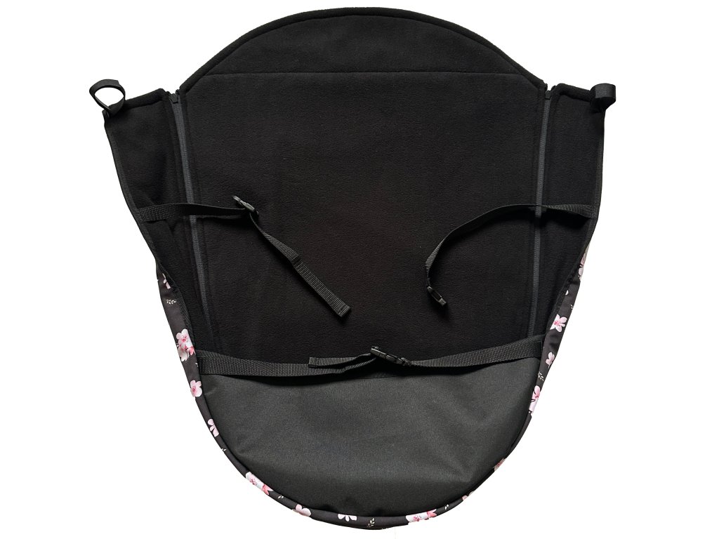Uchytenie nánožníka ku kočíku je riešené popruhmi a pútkami v troch úrovniach, vďaka čomu do kočíka nefúka.