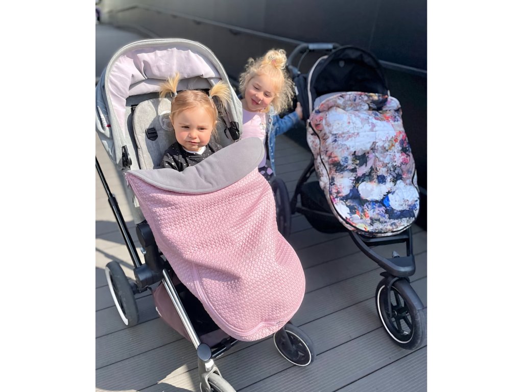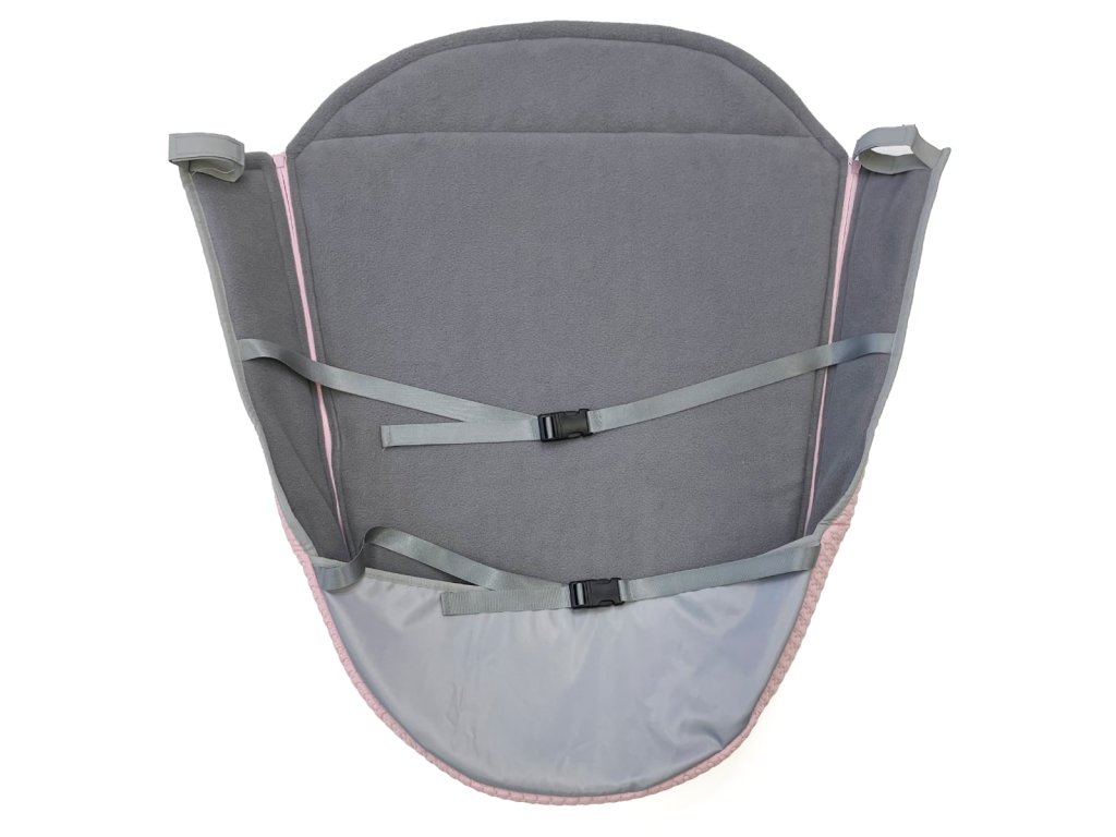 Uchytenie nánožníka ku kočíku je riešené popruhmi a pútkami v troch úrovniach, vďaka čomu do kočíka nefúka.