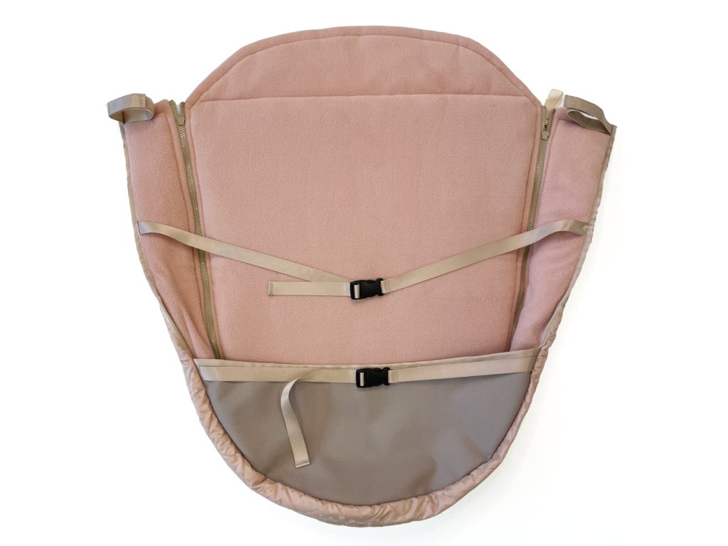 prichytenie nánožníka ku kočíku je riešené popruhmi a pútkami v troch úrovniach, do kočíka tak nefúka