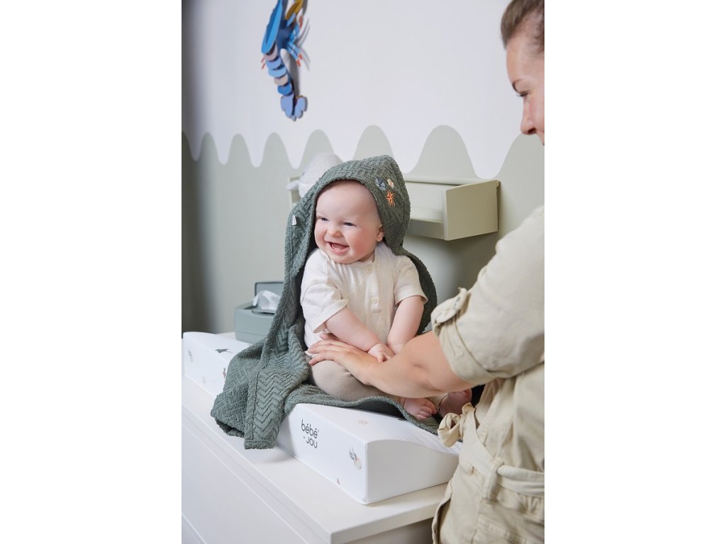 Mäkký návlek na prebaľovaciu podložku slúži na to, aby sa dieťa cítilo v teple a ako v bavlnke. Súčasne chráni materiál podložky pred pôsobením kozmetických prostriedkov a olejov. Elastický zamat po obvode zaistí pružnosť. Froté návlek na podložku je vyrobený z materiálu 100% bavlna, zodpovedajúceho prísnym ustanoveniam "OKOTEX".