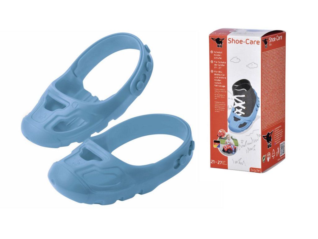 Ochranné návleky na topánky v modrej farbe pre jazdu napr. na odrážadle, bicykli apod. Nezanechávajú stopy na podlahe, protišmyková úprava. Ľahko nastaviteľná veľkosť pomocou háčikov a očiek. Vhodné pre detskú obuv s veľkosťou 21-27.Dodatočné parametre