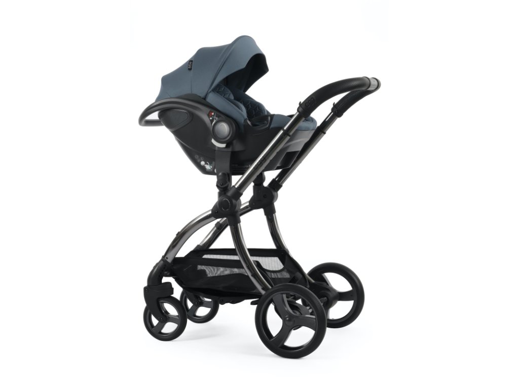 - Nasadenie autosedačky egg Shell do multi adaptérov na podvozku kočíka egg® a egg²® je rýchle a jednoduché a zvládnete to jednou rukou: rukoväť autosedačky nastavíte do kolmej polohy, autosedačku nasadíte na adaptéry a sklopením rukoväti dozadu dôjde k uzamknutiu poistky autosedačky v ráme. Spätným pohybom rukoväte do kolmej polohy poistku odistíte a autosedačku jedným pohybom odstránite z podvozku