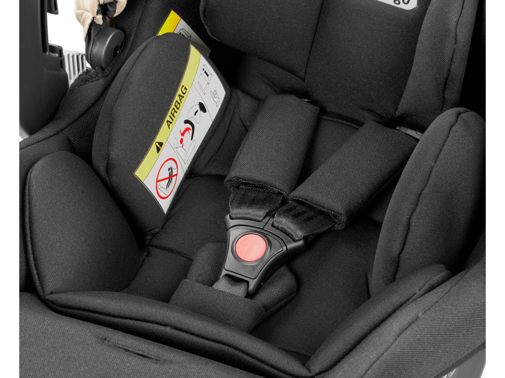 3-bodový pás s mäkkými ramennými vypchávkami. Ergonomická sedacia plocha s anatomickým vankúšom pre novorodencov. Chrbtová opierka je viac sklopná ako u autosedačky Primo Viaggio SL.