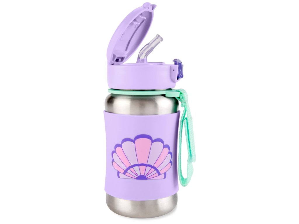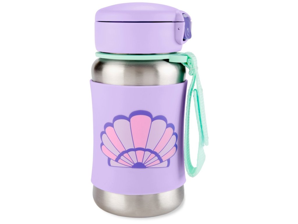SKIP HOP Spark Style Fľaša so slamkou na vodu nerez Mušľa 12m+