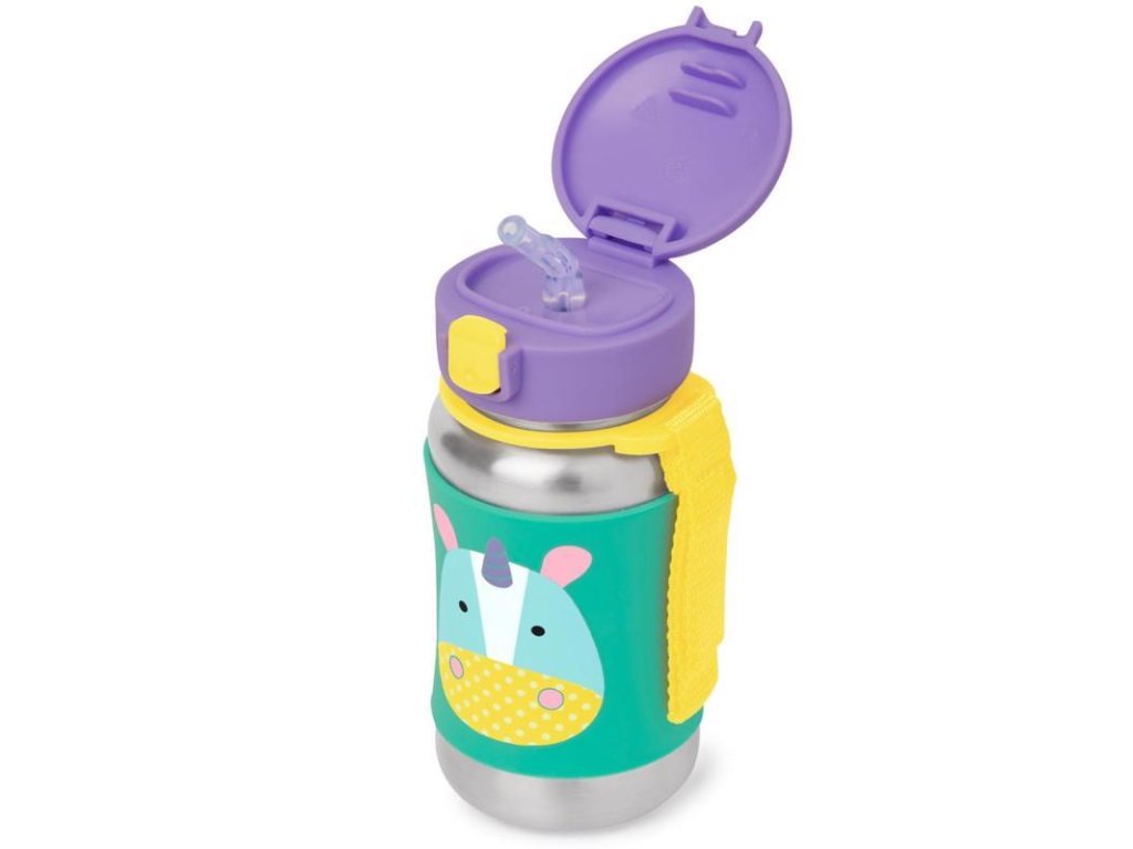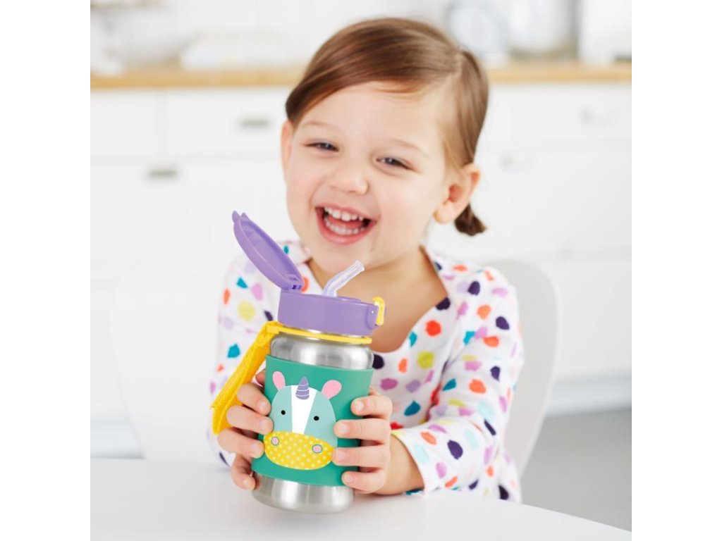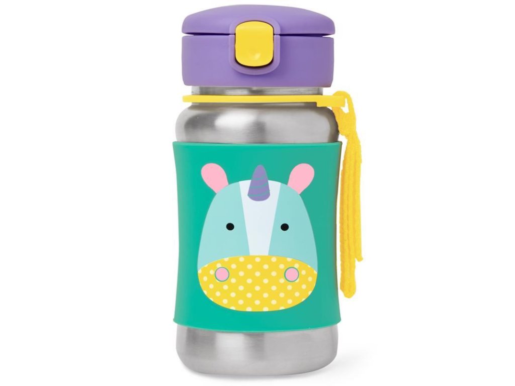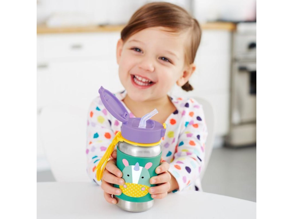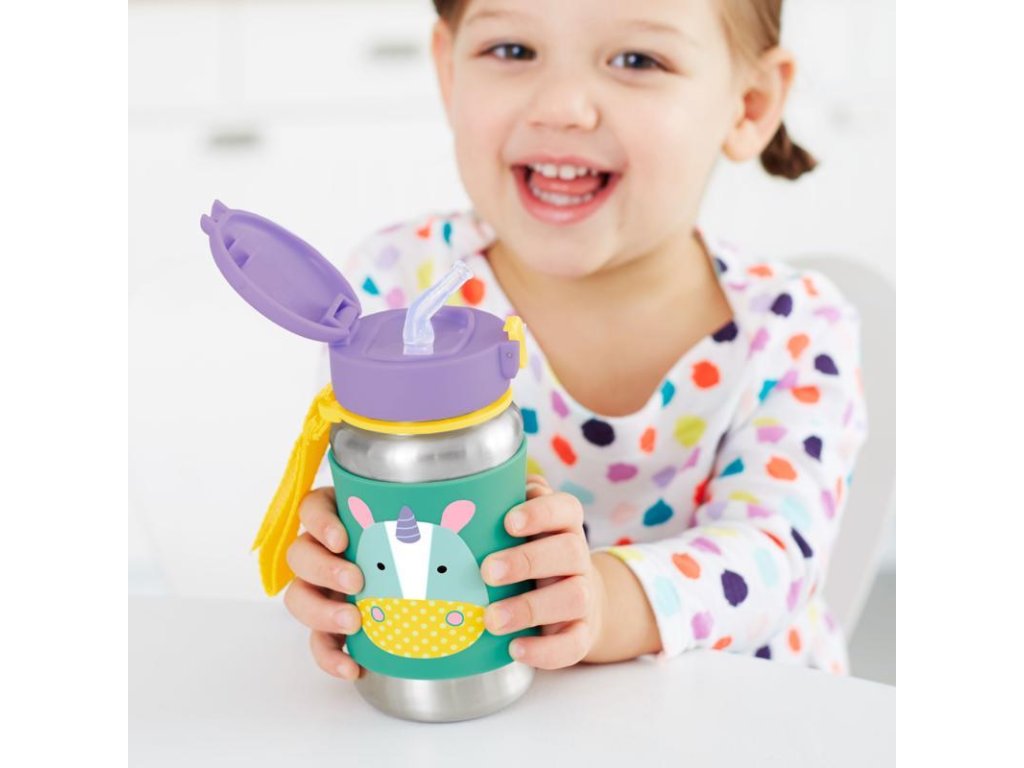 SKIP HOP Zoo Fľaša so slamkou na vodu nerez Jednorožec 12m+