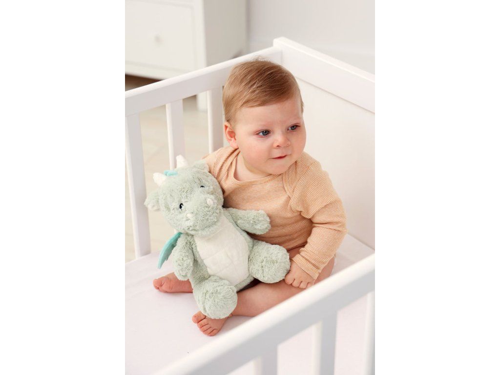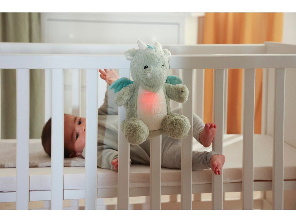 S 8 upokojujúcimi zvukmi a melódiami, z ktorých si môžete vybrať, bude vaše dieťa prenesené do ríše snov jediným stlačením tlačidla! Drak má aj suchý zips, vďaka ktorému najnovšieho parťáka bábätka jednoducho pripevníte na každú postieľku. A keď sa srnček potrebuje okúpať, odstráňte reproduktor a hoďte maskota do bielizne.