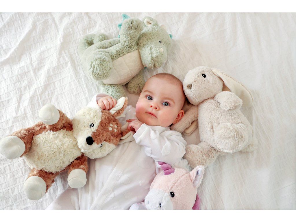 Sú to dokonalí spoločníci na noc vďaka skrytému zvukovému panelu, ktorý hrá osem upokojujúcich zvukov a melódií, ktoré vaše dieťatko uvedú do pokojného a relaxačného spánku.
