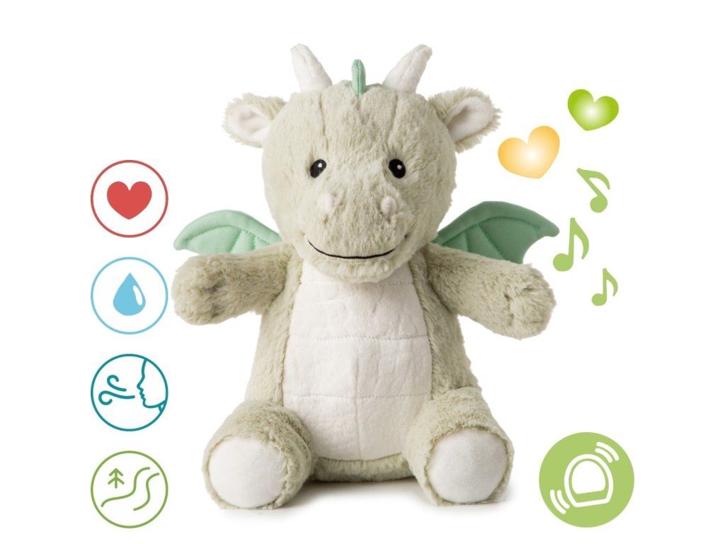 Rozkošný Drak má 4 zvuky, ktoré upokojujú a pomáhajú utíšiť bábätká, keď je čas ísť spať, vrátane tlkotu srdca, ktorý napodobňuje upokojujúce zvuky, ktoré bábätko pozná z maminho bruška. Hracia skrinka pre dieťa hrá aj štyri uspávanky, ktoré oslovia rodičov aj dieťa.