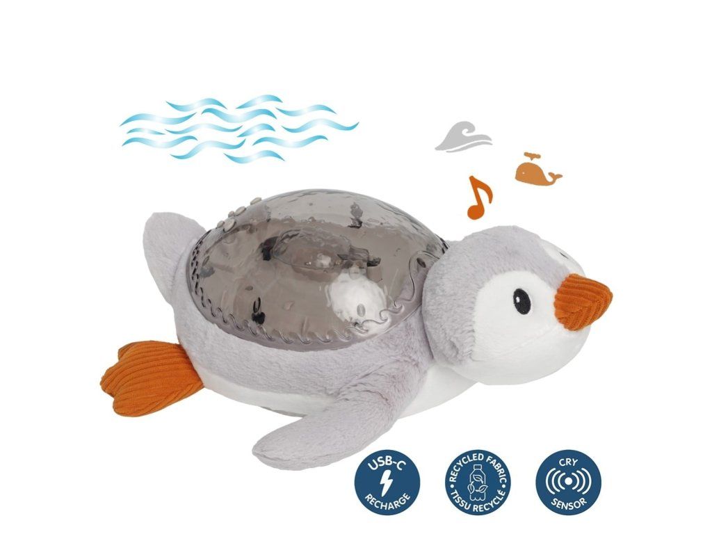 Cloud b® Tranquil Penguin™ predstavuje kombináciu nočného svetla, projektora a upokojujúcej hudby, čím vytvára magickú atmosféru pre pokojný spánok.