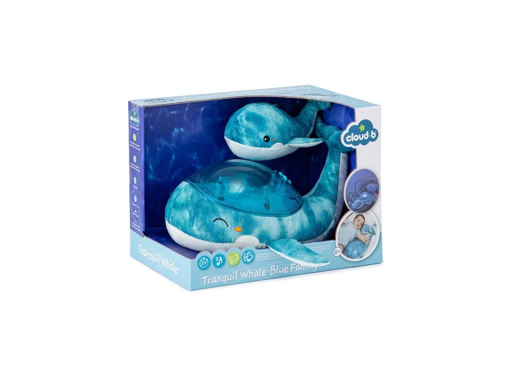 Cloud b®Tranquil Whale™- Nočné svetielko - Veľrybia rodina, modrá