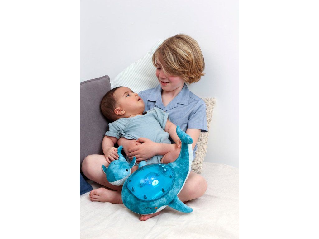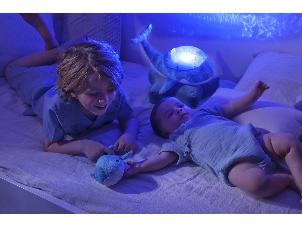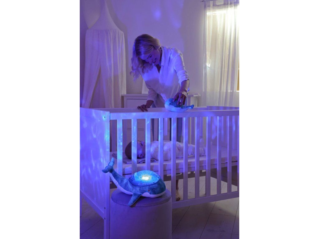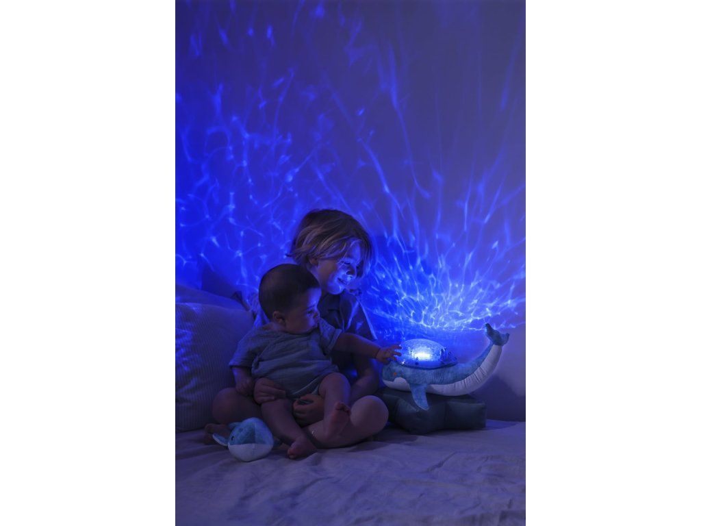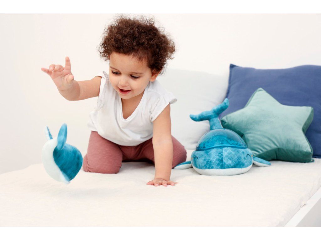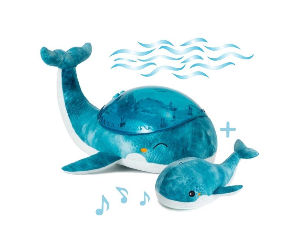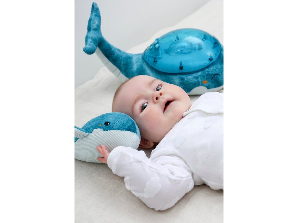 Mláďa veľryby, ktorá je súčasťou setu, podporuje motorický a kognitívny vývoj dieťaťa. V kombinácii s nočnou lampou vytvára dokonalý set, ktorý vám pomôže zaspať.