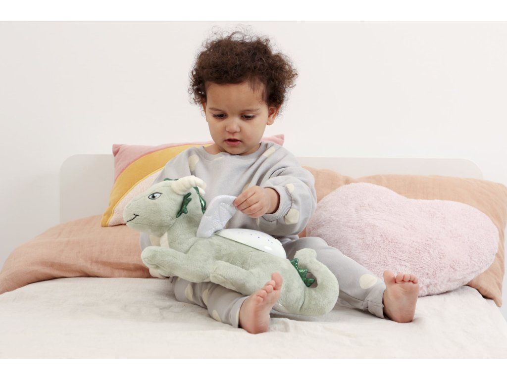 Cloud b® Twilight Buddies™ Dragon je nielen nočné svetielko, ale aj verný plyšový kamarát, ktorý pomáha deťom cítiť sa bezpečne a pokojne v tme. Premietaním hviezdnej oblohy a upokojujúcim svetelným efektom vytvára ideálne prostredie pre sladký spánok.