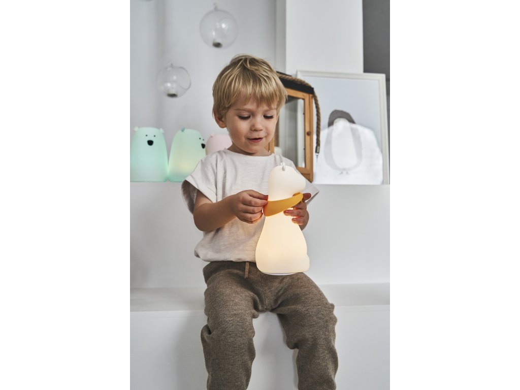 Detská dotyková lampa Žirafa Roztomilá detská lampička ovládaná dotykom Detská dotyková lampa Žirafa je skvelým doplnkom do každej detskej izby. Ponúka rôzne možnosti svietenia v siedmich rôznych farbách, vrátane svetla vhodného na čítanie knižky pred spaním a jemného svetla, ktoré deťom pomôže zaspať. Súčasťou balenia sú 3 šatky v rôznych farbách, ktoré môže dieťa žirafe meniť podľa nálady. Lampa sa jednoducho ovláda dotykom, je prenosná, takže je možné vziať ju všade, kde sa dieťa chystá spinkať.Praktické a prenosné nočné svetielko Rodičom detská lampička uľahčuje nočnú starostlivosť o dieťa. Vďaka nej môžete bez problémov na neho dohliadať, nadojčiť ho alebo prebaliť bez toho, aby ste ho prebudili ostrým svetlom. Po úplnom nabití vydrží lampa svietiť až 12 hodín a ponúka možnosť automatického vypnutia po 2 hodinách, čo šetrí energiu.Vlastnosti:- mäkký a na dotyk príjemný silikón bez BPA- ovláda sa dotykom- svieti v 7 farbách- doba svietenia po úplnom nabití cca 12 h- možnosť automatického vypnutia po 2 hod- nabíjanie pomocou kábla USB Type-C (súčasťou balenia)- 3 farebné šatky v balení- nezohrieva sa- ľahko sa čistíDodatočné parametre