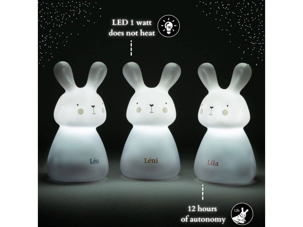 Už od prvých dní môžu bábätká zaspávať s nočnou lampou v postieľke, aby si zabezpečili pokoj pred spaním. Zajkov je možné umiestniť aj kdekoľvek v detskej izbe alebo dať na miesto, kde osvetlia cestu do kúpeľne či izby rodičov.