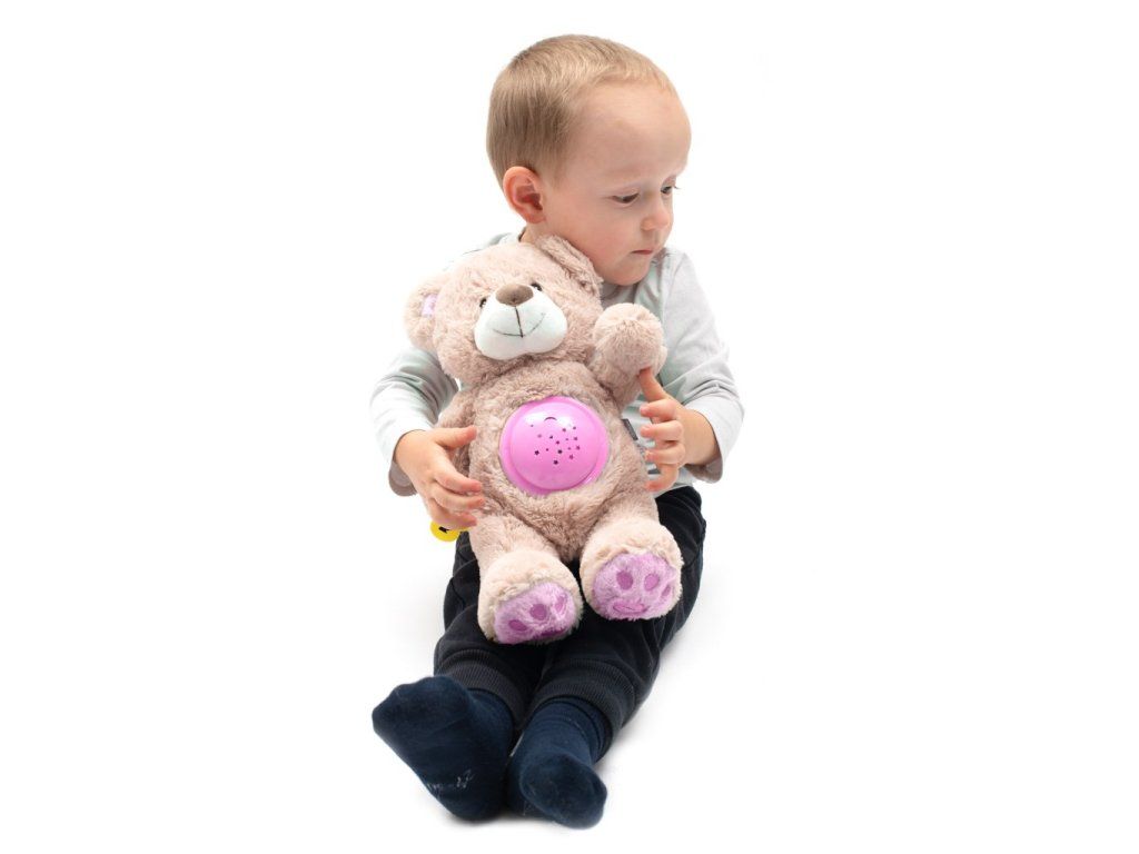 Plyšový zaspávačik medvedík s projektorom Baby Mix ružový - 37214
