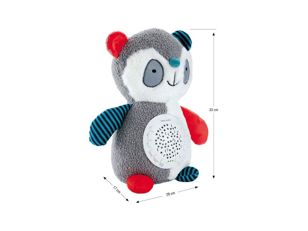 Vaše dieťatko sa pri pohľade na príjemnú plyšovú hračku bude cítiť bezpečne a pohodlne, a relaxačné melódie a zvuky mu pomôžu upokojiť sa a nechať sa ukolísať ku spánku.