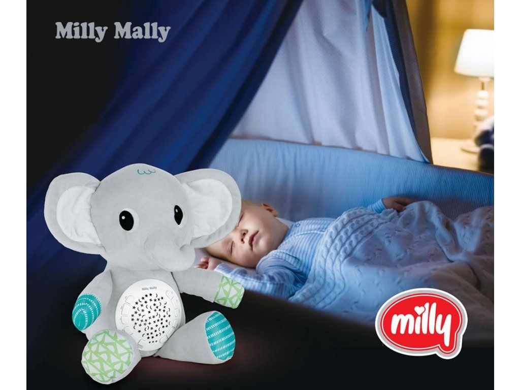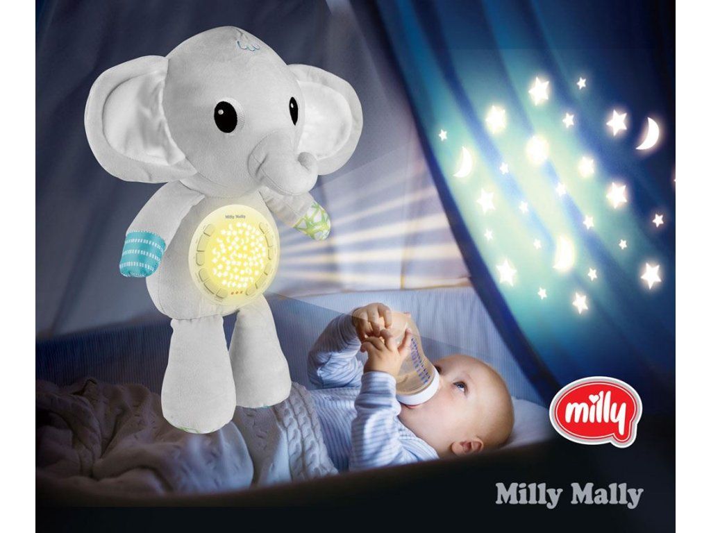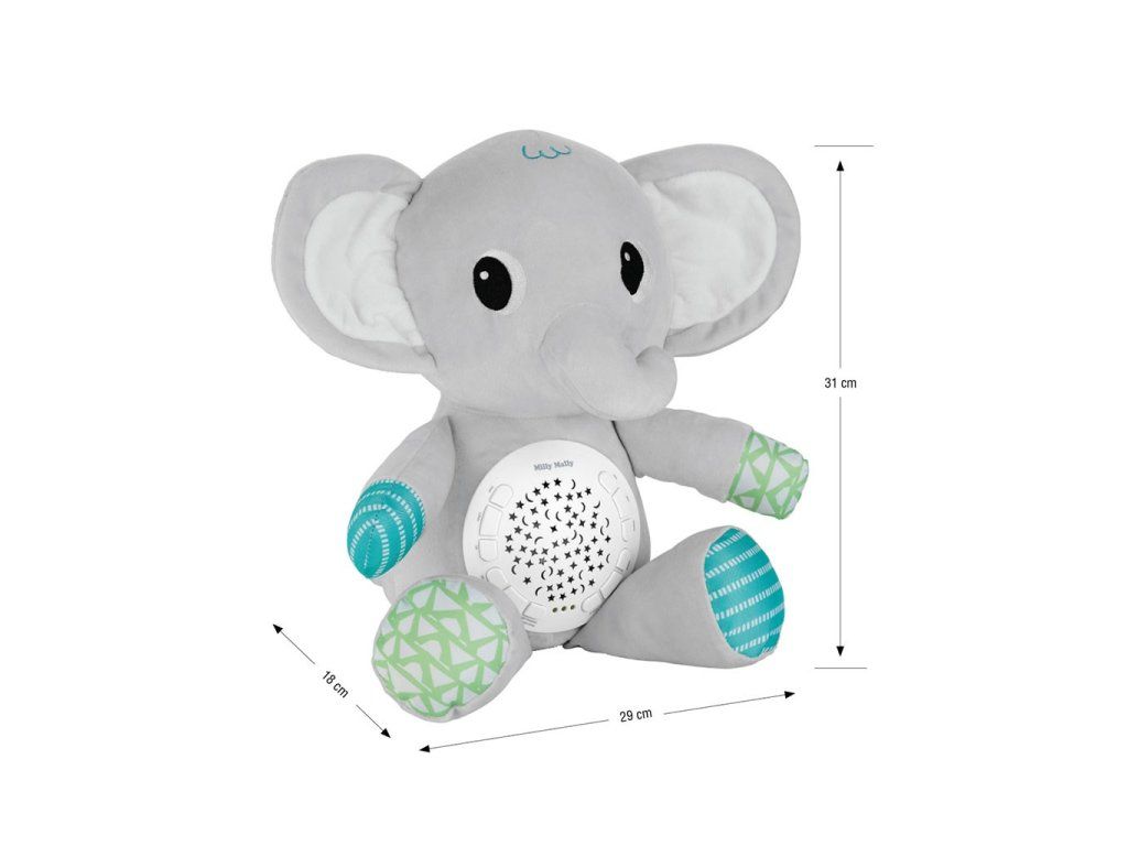 Plyšový zaspávačik sloník s projektorom Milly Mally - 55170