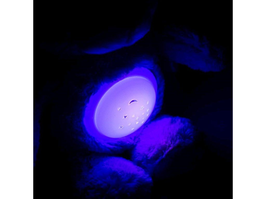 Roztomilý plyšový zajačik s projektorom Baby Mix. Po stlačení tlačidla umiestneného na labke zapnete svetielko, ktoré mení farbu a poslúži ako maličká nočná lampička a zároveň sa sputia jemné melódie. V zadnej časti je umiestnený strojček na batérie. Zapnúť a vypnúť je možné tlačidlom on / off. Batérie sú súčasťou balenia. 3x Typ AA 1,5 V. Hračka je vhodná pre deti od 6 mesiacov. Rozmery: cca 34 cm.