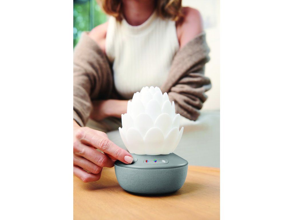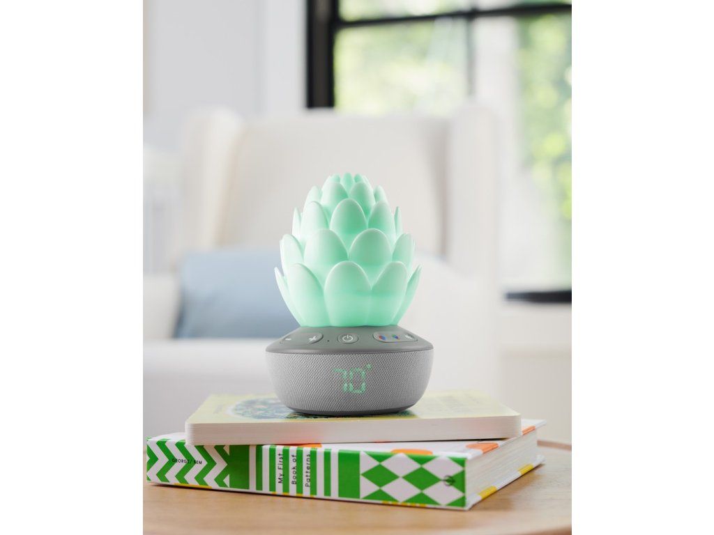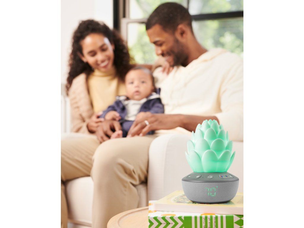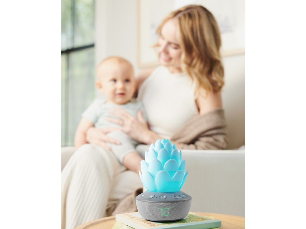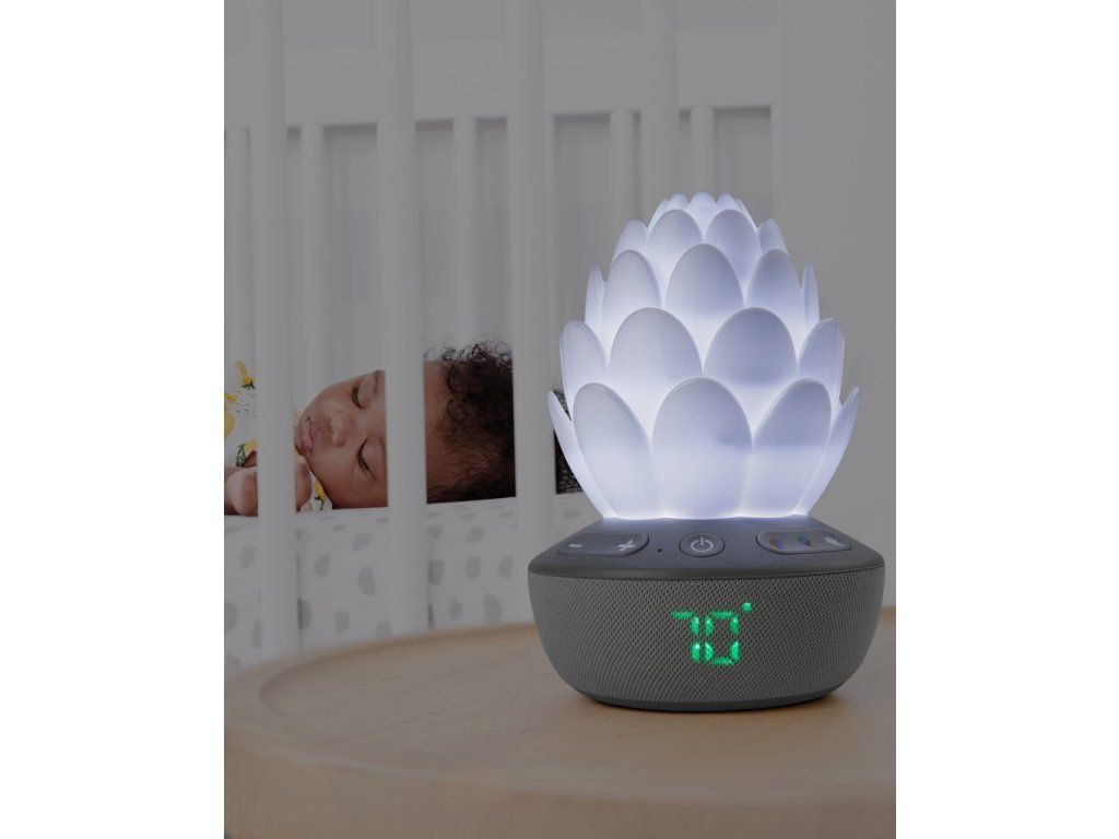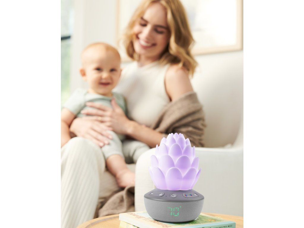 Inteligentný senzor plaču v tvare kvetiny upokojí dieťatko sladkými melódiami, zvukmi prírody a nahratým hlasom – dokonca aj uprostred noci! Senzor automaticky reaguje na plač dieťatka, aby sa upokojilo, čím sa bábätko a aj rodičia v noci lepšie vyspia. Nočné svetlo so siedmimi rôznymi farbami plus režimom svetelnej šou pre upokojujúcu animovanú žiaru upokojí každé dieťatko. Senzor disponuje aj teplomerom, aby ste vždy vedeli, či je v detskej izbe príjemná teplota.Vlastnosti: