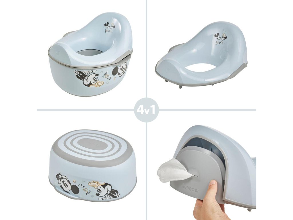 Detský nočník 4v1 nájde široké uplatnenie v každej domácnosti s dieťaťom. Okrem klasického nočníka slúži ako stupienok, redukcia na toaletu a môžete do neho uložiť aj utierky, aby ste ich mali vždy po ruke.